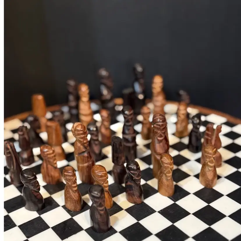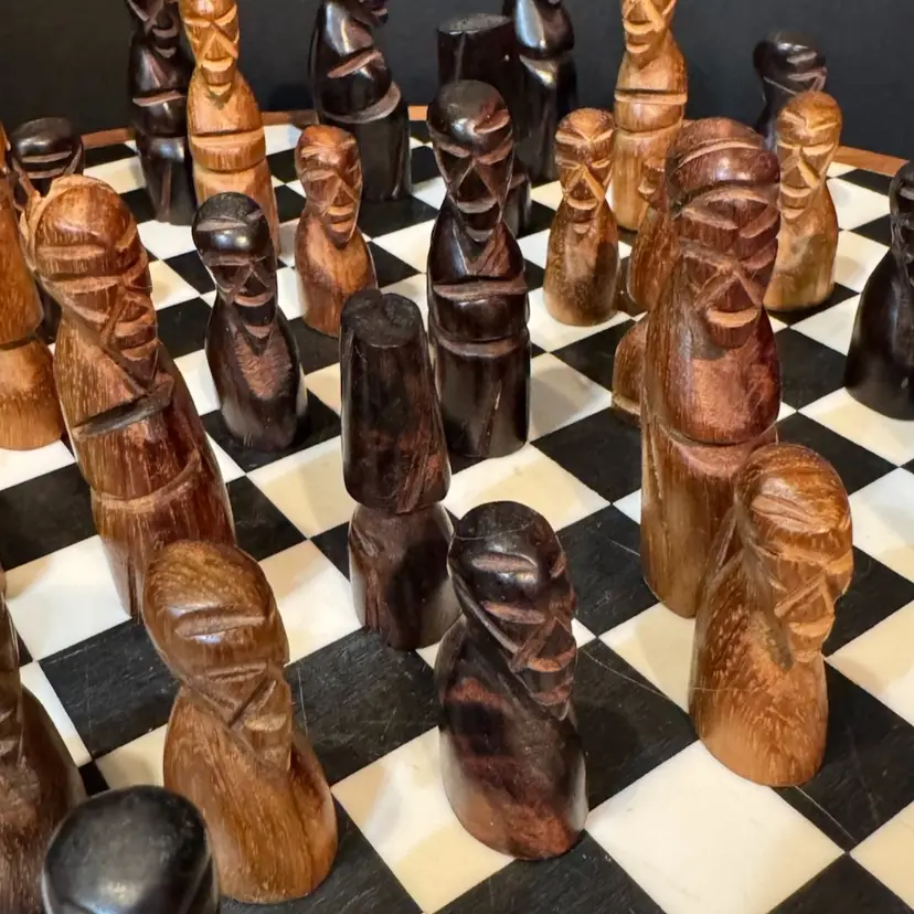 Awesome set of African hand carved chest pieces. All 32 pieces accounted for! A beautiful gift for any chess player on your Holiday list!