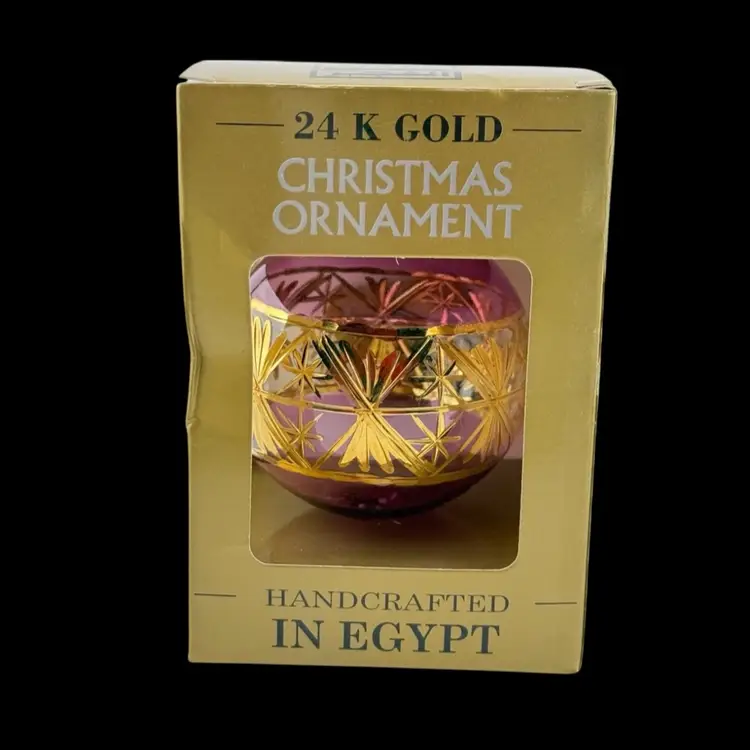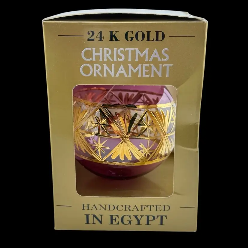 Purple Egyptian Glass Gold Tone Cut Ornament In Box