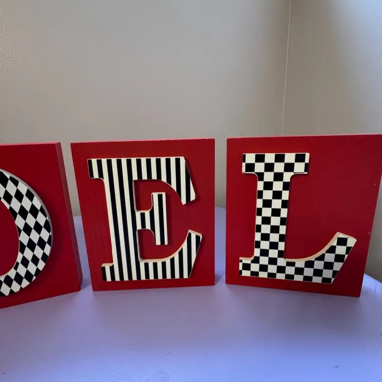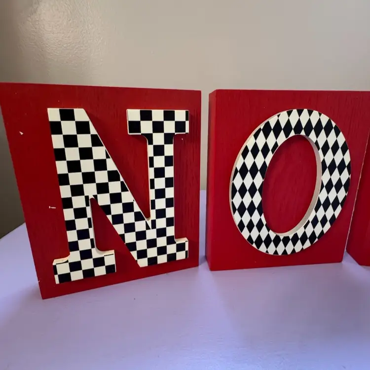 Four piece set of Mackenzie-Childs Noel blocks. Purchased from website and never used. Excellent condition. Each block measures about 6 1/4“ x 5“ x 1“. Would make a great gift for anyone who loves Christmas Decor or Mackenzie- Childs!