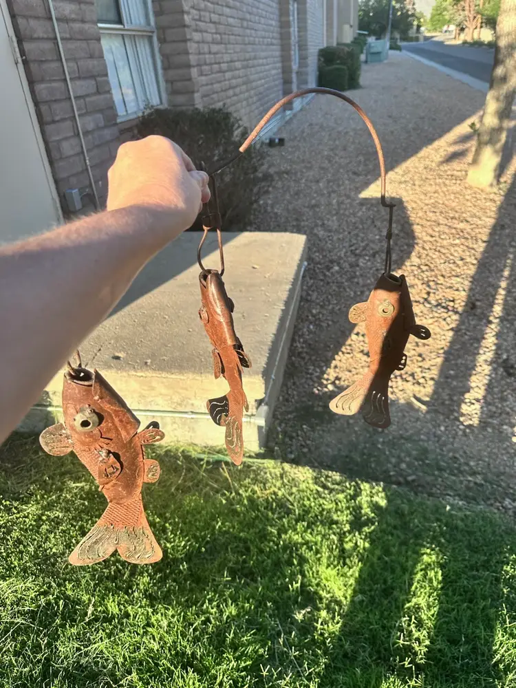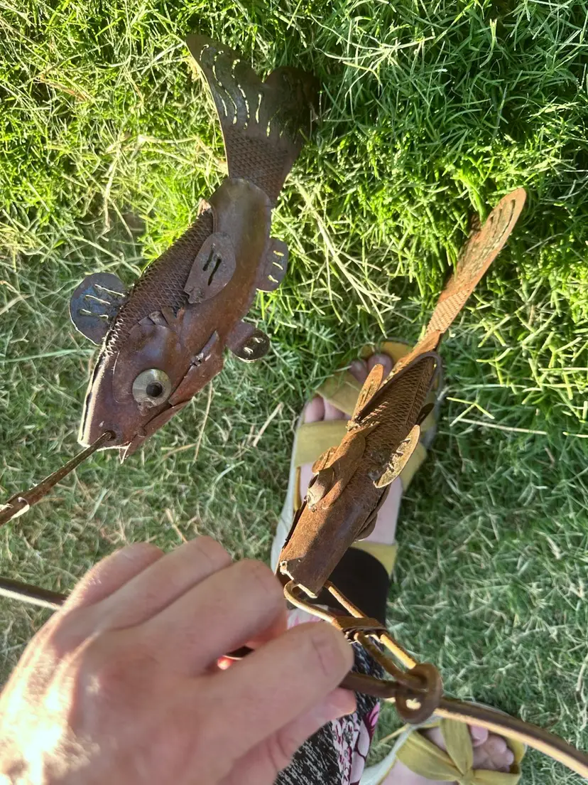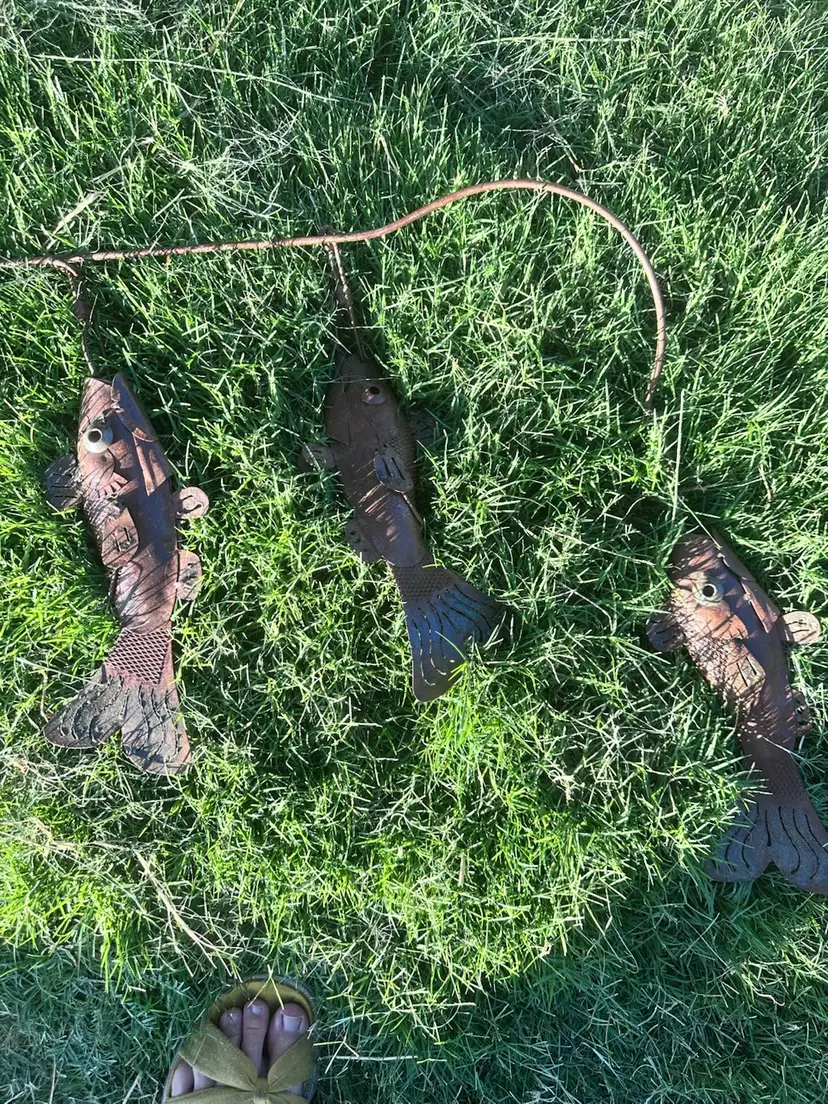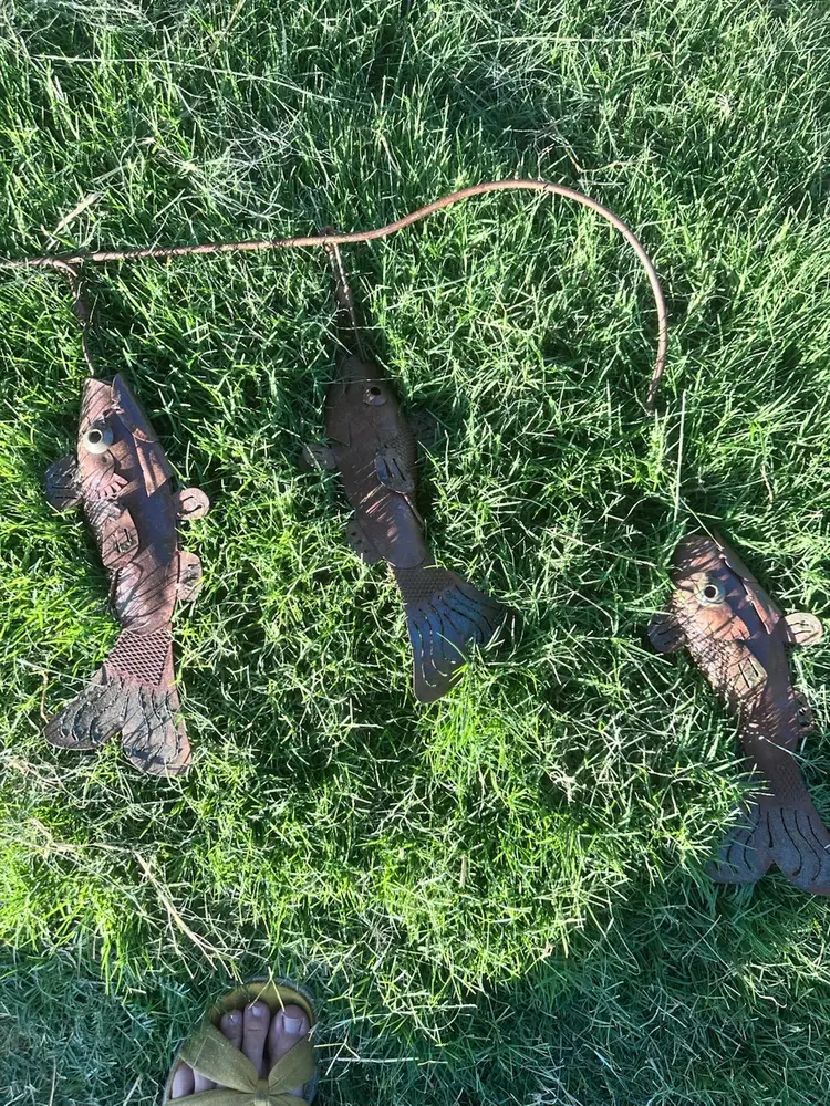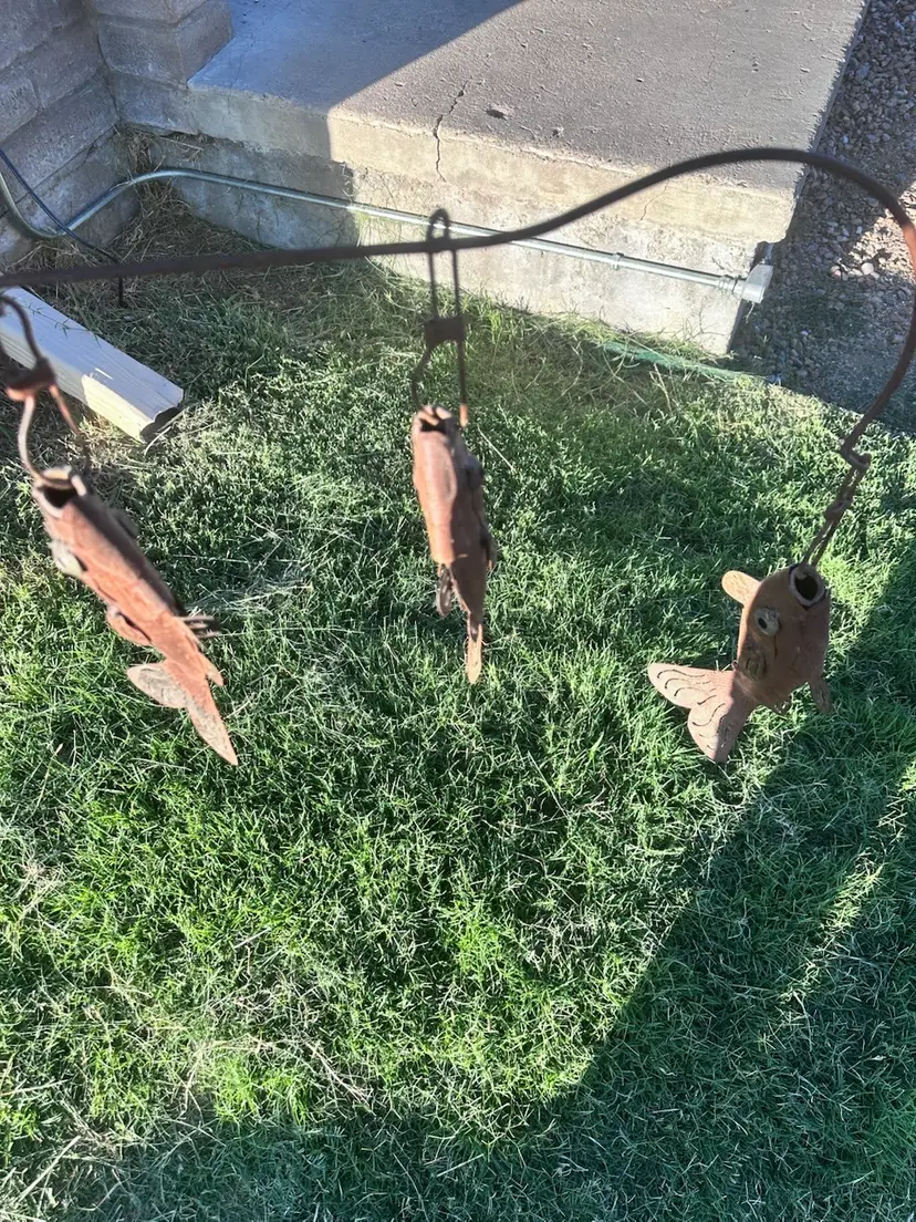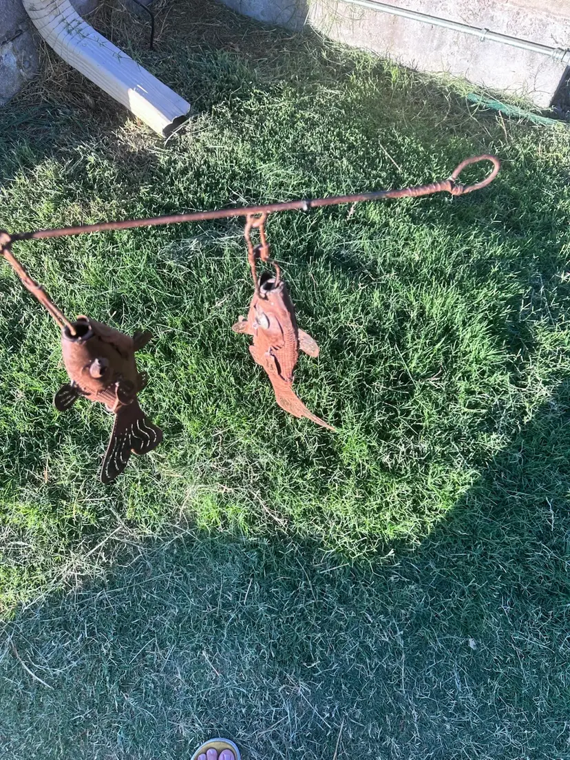 It is metal I like it’s a perfect gift for a fisherman or a hunter measures 27” And 21” it is rusty it does come as is