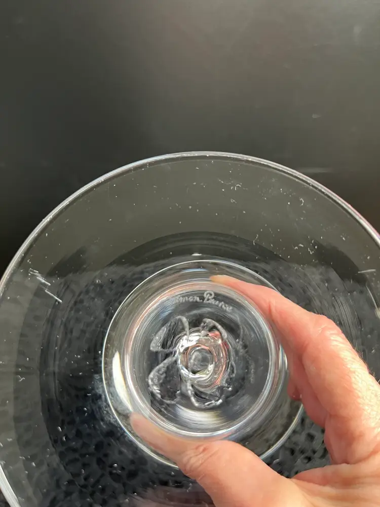 Light green UV reactive. 2 small scratches on top of base. Otherwise in excellent condition. Weighs 2 Lbs. Diameter-4 3/4". Lot 26