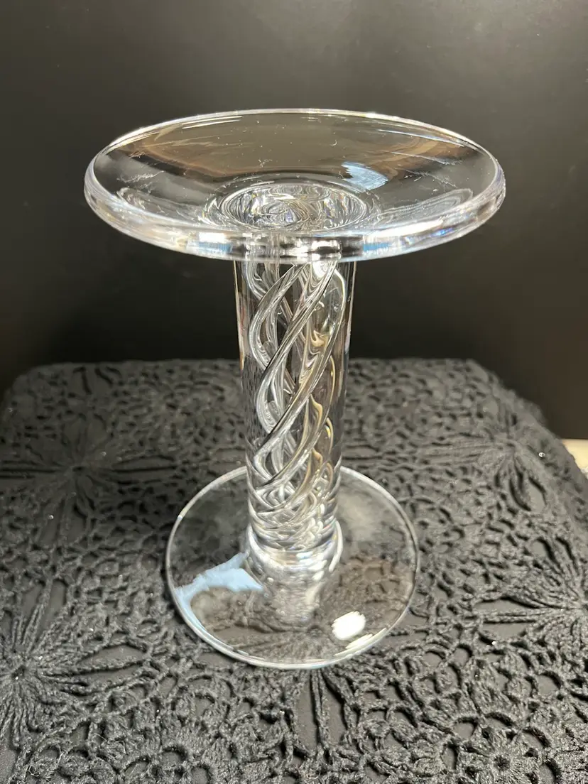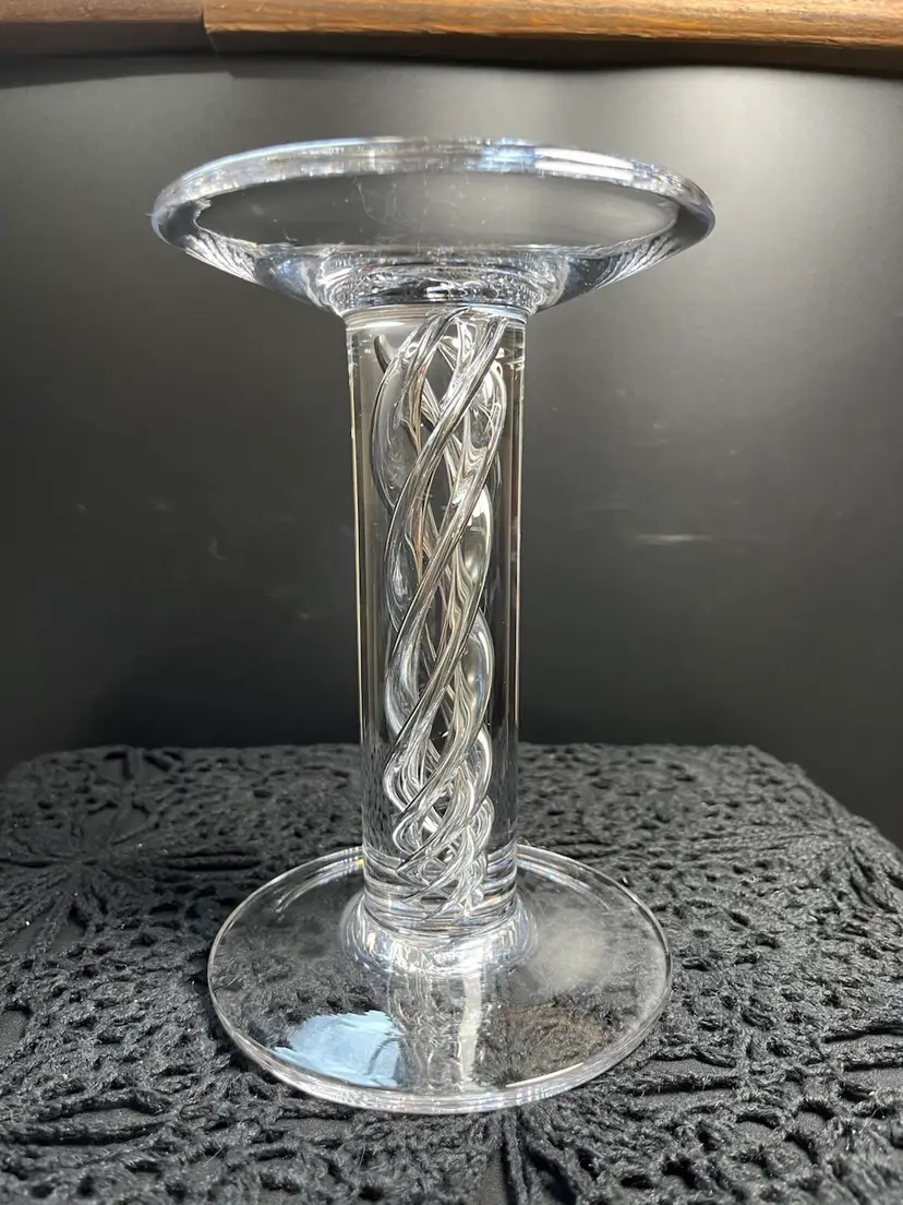 Paper Weight Lovers Dream Display Piece!! 7 1/4" Simon Pearce-Stratton Pattern-Hand Blown-Air Twist-Pillar Candle Holder-Signed