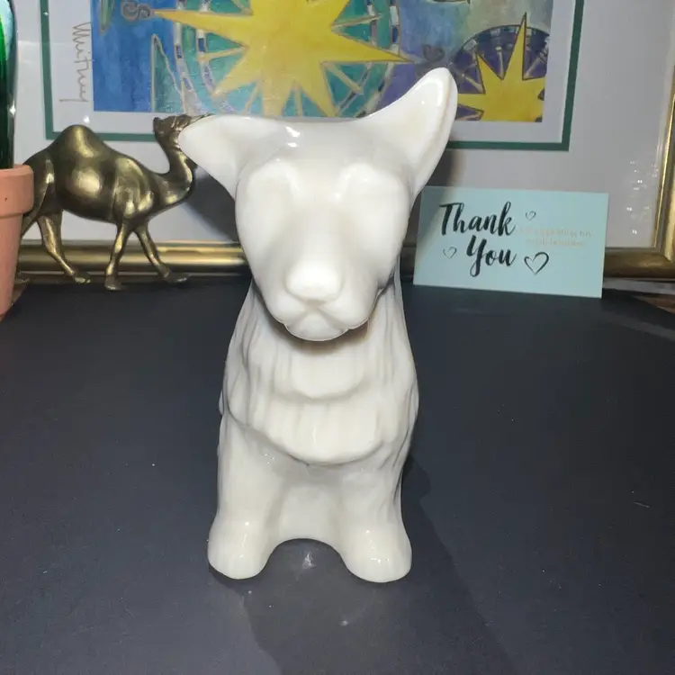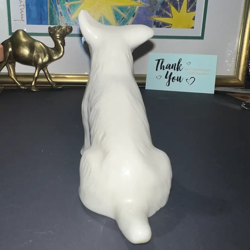 Stands about 4 in. And about 5 in long . No chips or cracks