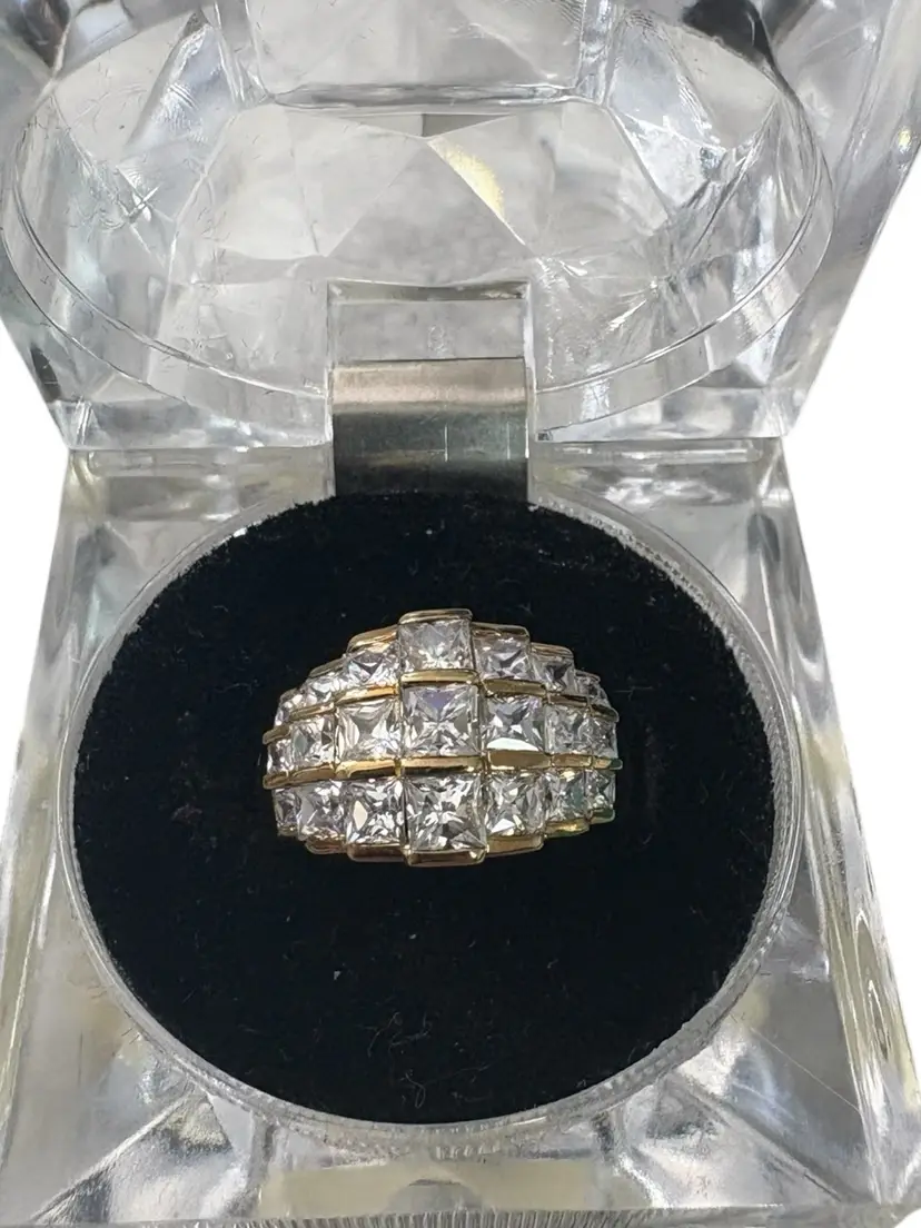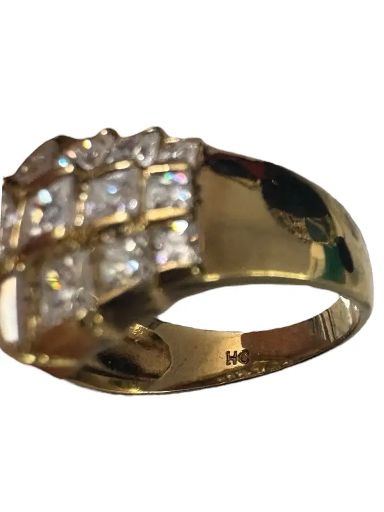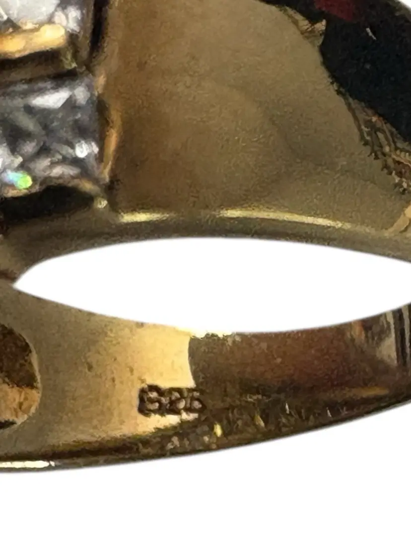Size 6, approx. 3.76 cts CZ stones, gold vermeil over 925, 6g total weight.