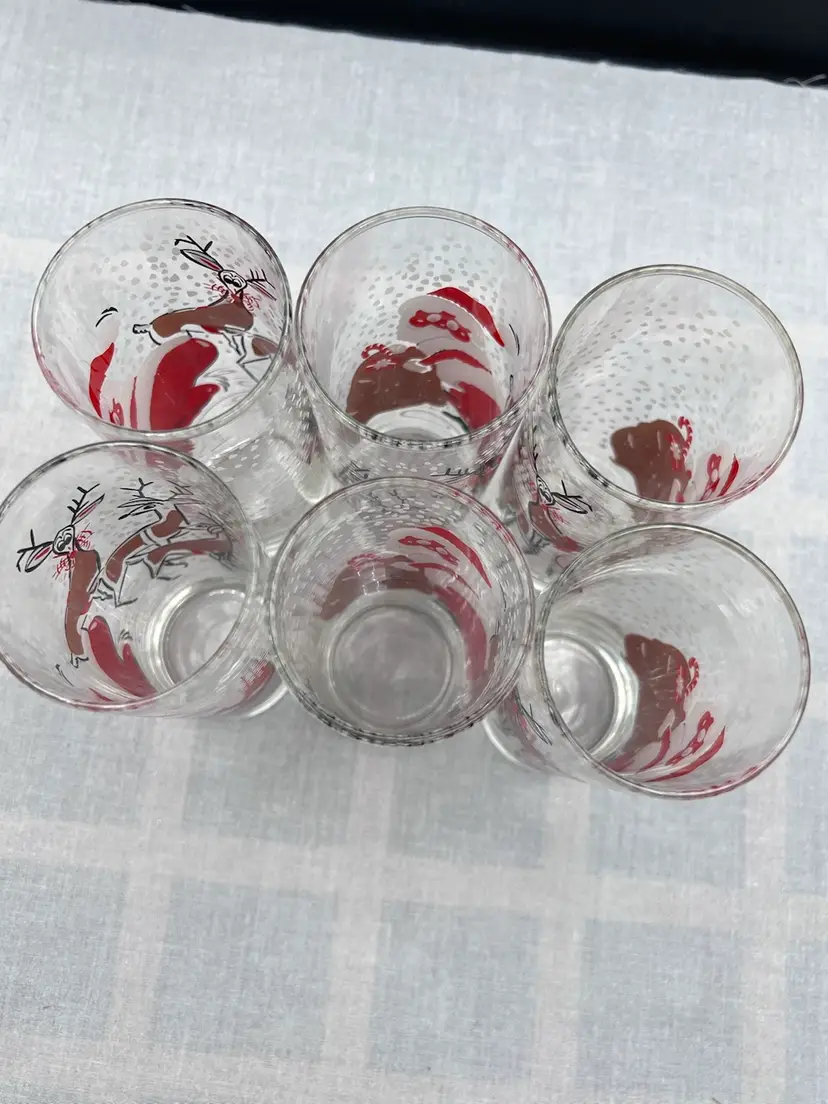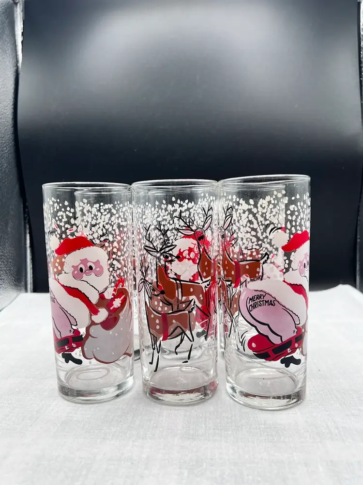 #1067B Vintage MCM Naughty Santa and Reindeer Collins Glasses