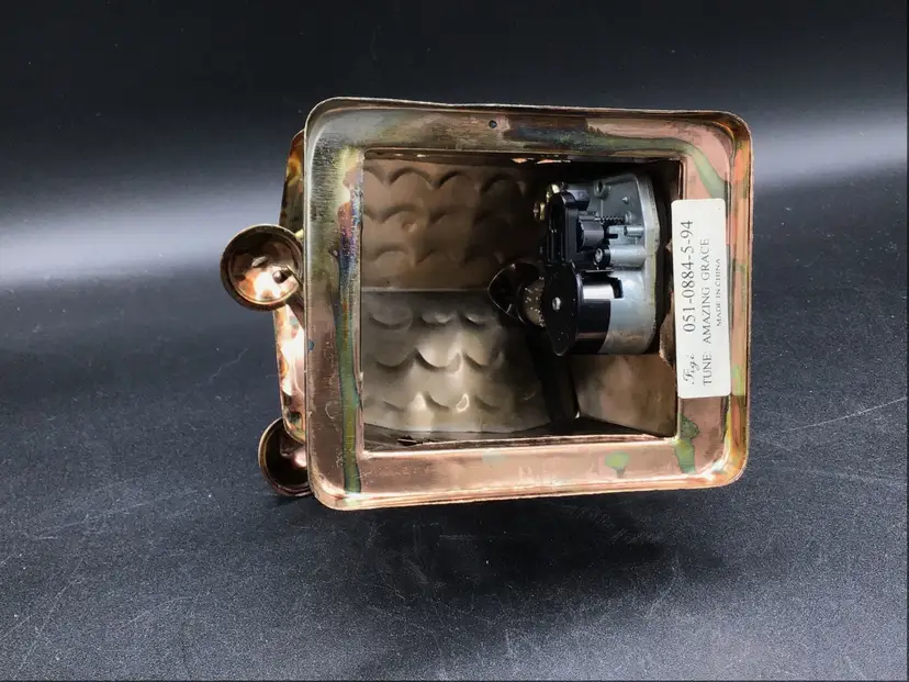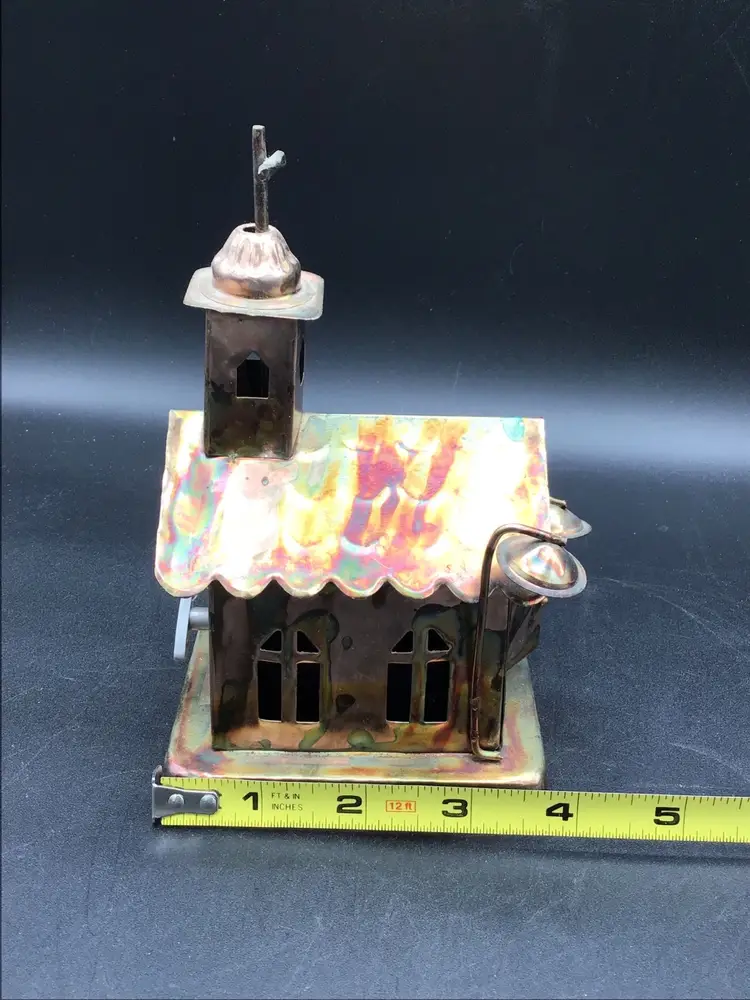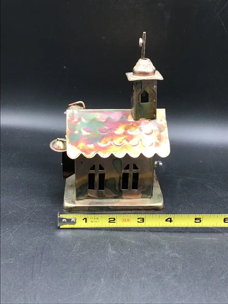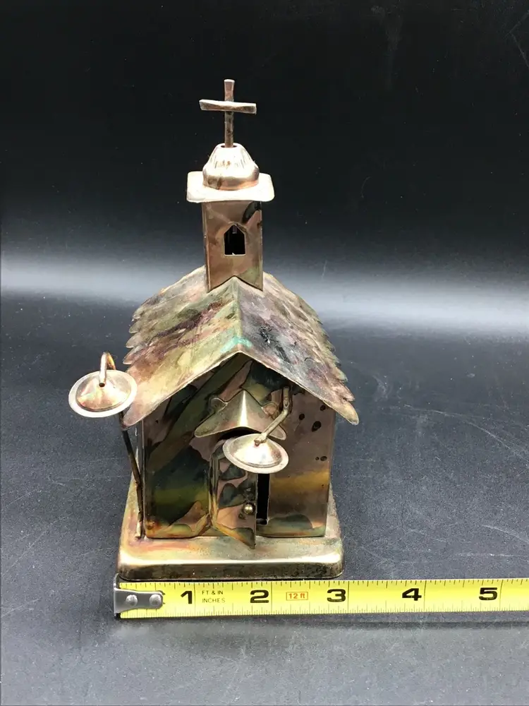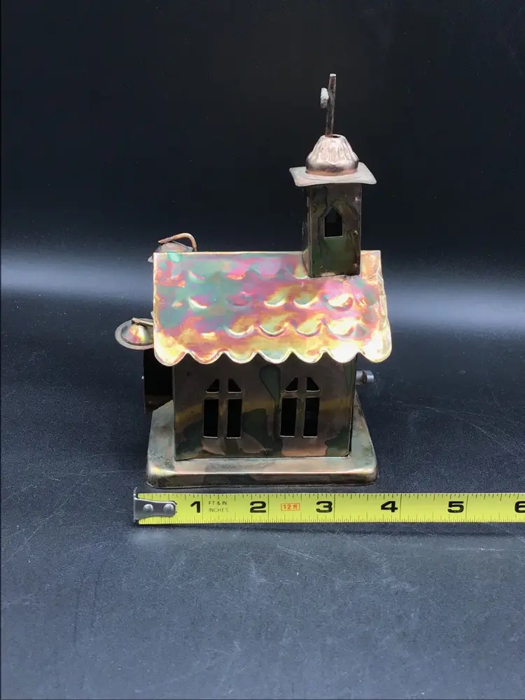 This musical church plays Amazing Grace. It stands approx 6 1/2 inches tall, 4 1/2 inches long and 3 1/4 inches wide. No condition issues noted. Please see pictures for complete description, measurements in condition.
