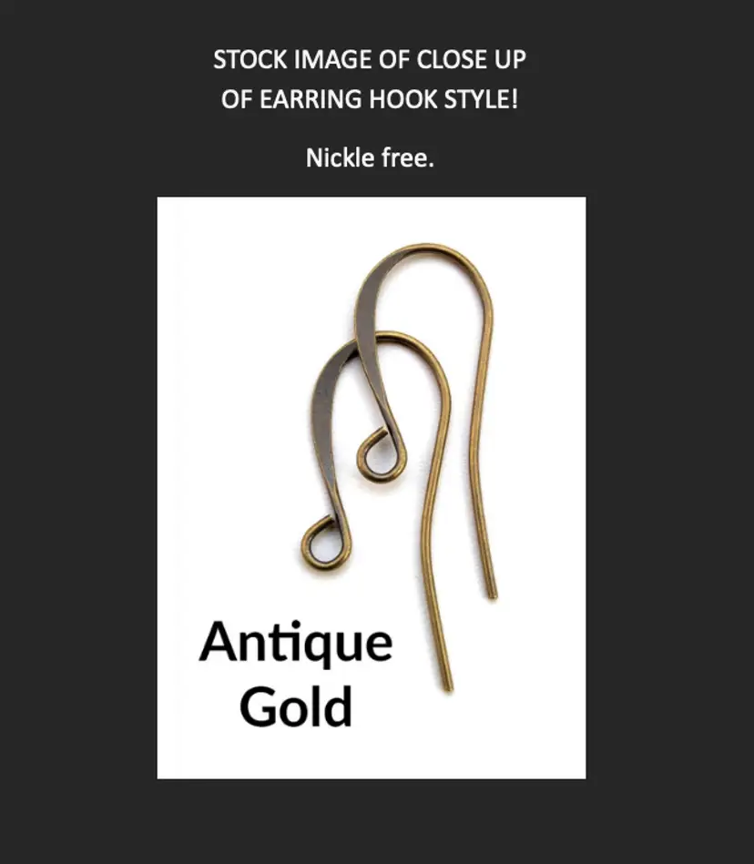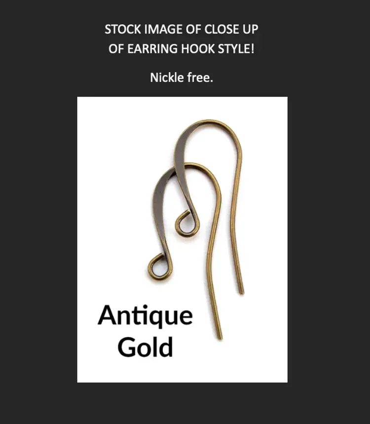 • Close up stock image provided of earring hook style. Note: Colors in photographs may vary slightly from actual colors.
