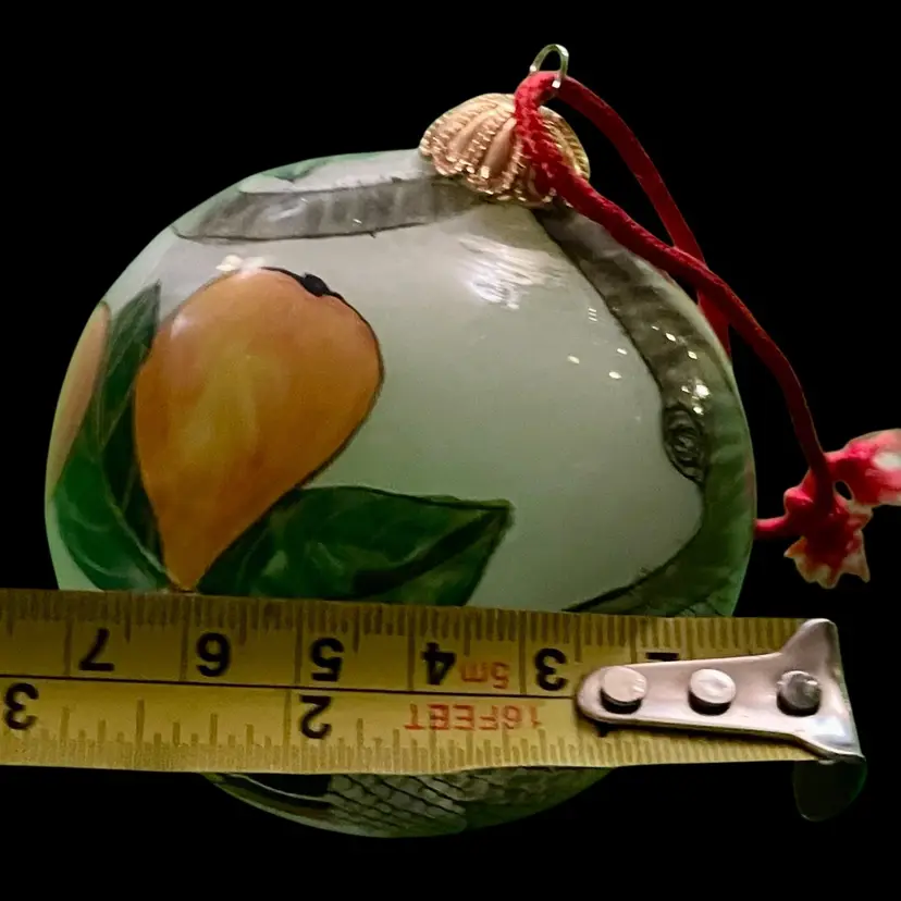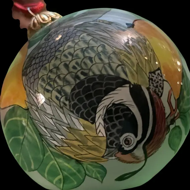 1990 BILL YEE Inside Painted Glass Christmas Ornament PARTRIDGE IN A PEAR TREE Condition is Used. Shipped with USPS Mail