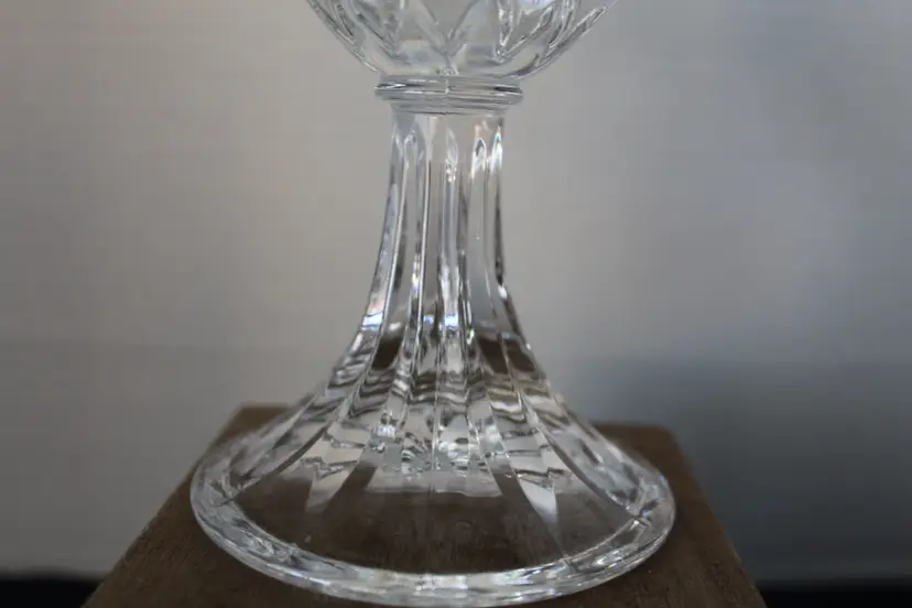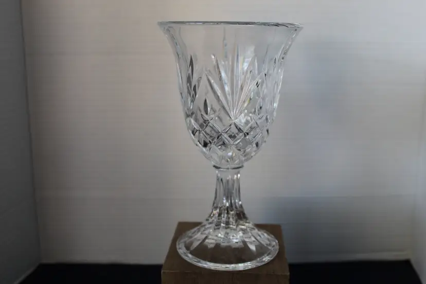 These discontinued heavy water goblets are stunning. Can also be used as a hurricane light or as vases. No chips or cracks. Comes from a smoke free home.