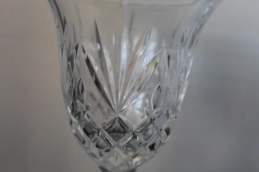 The 2 Lexington By Godinger Heavy Lead Crystal Goblets are elegant and stylish drinkware pieces perfect for all occasions. With a chalice-like shape and a cross hatch diamond and pineapple frond pattern, these goblets are crafted from high-quality crystal in a clear color. Made in the United States with a glossy finish, these goblets are a beautiful addition to any table setting. These original pieces are sure to impress your guests with their intricate design and American Directoire style.
