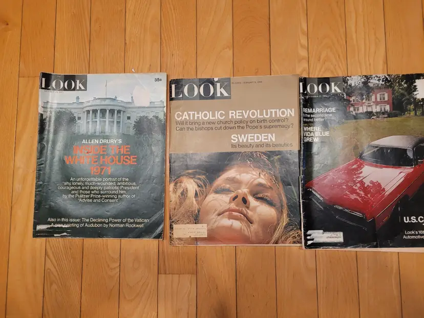A lot of 3 Vintage LOOK magazines. Various articles and ADVERTISEMENTS. Good Condition. NOT mint. Have been in storage. Great for crafting.