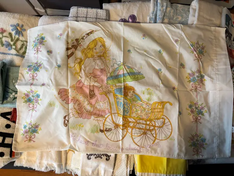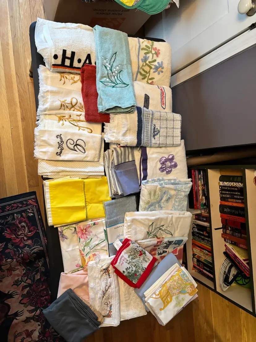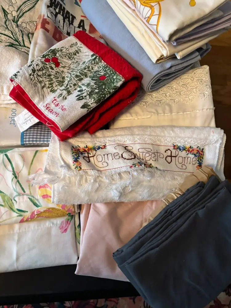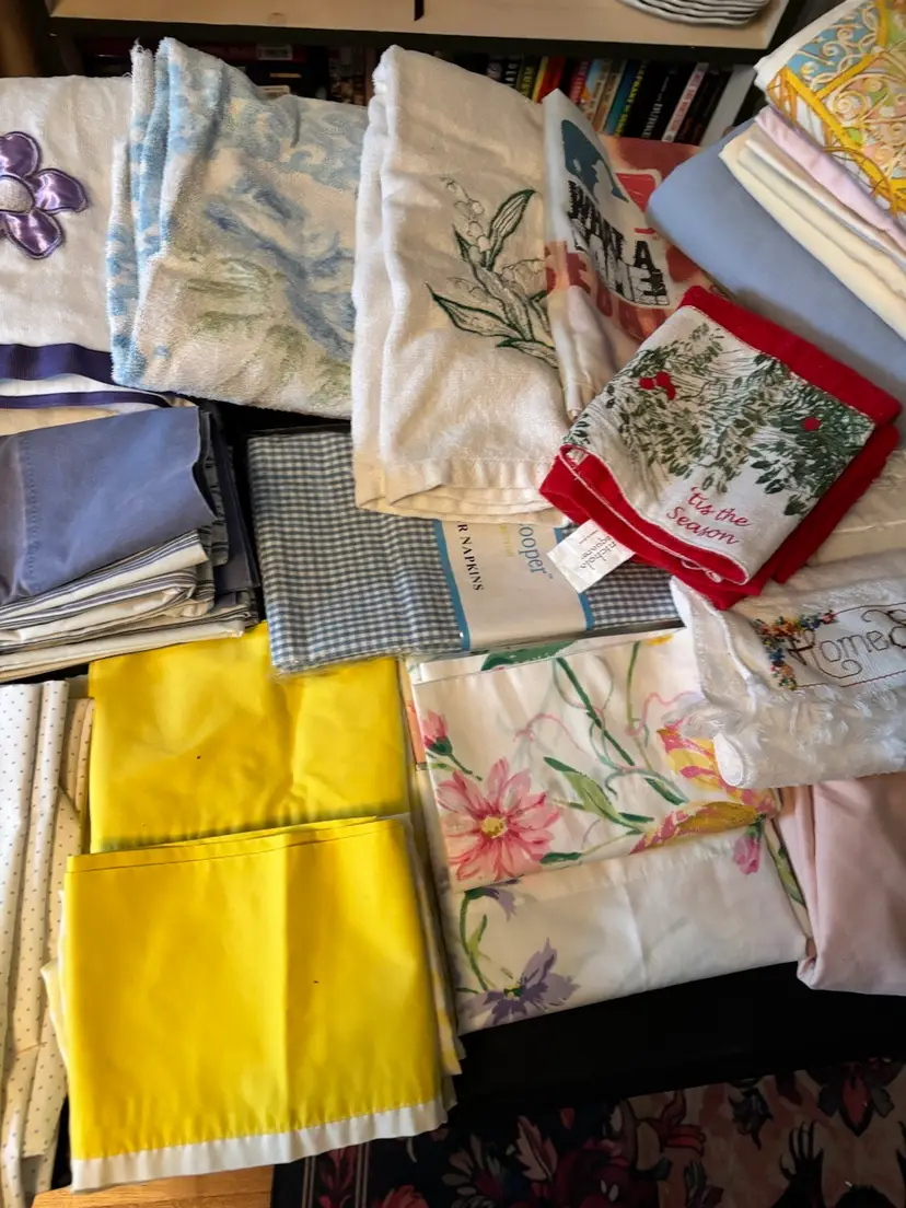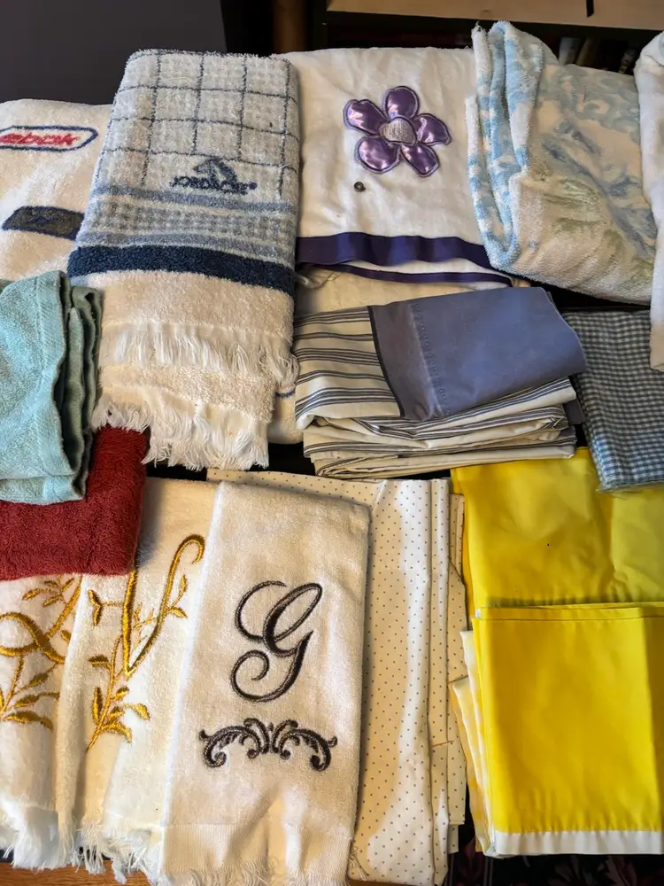 Pillow cases, towels including hand, finger, beach and washcloths. All in decent condition.
