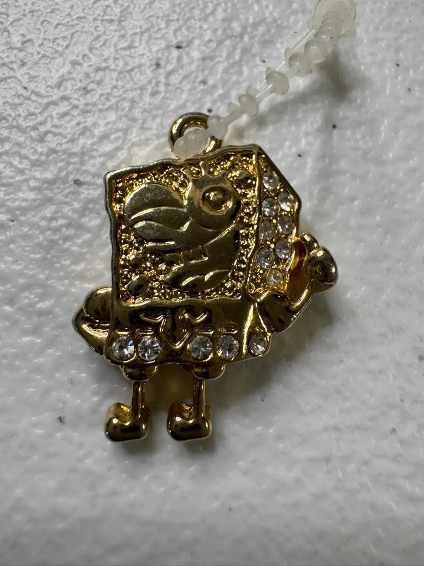 # 37 Gold Tone & Glass Rhinestone, Spongebob Squarepants Articulated Pendant 1”