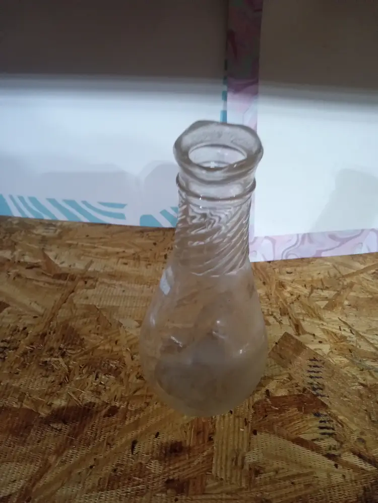 Classic vintage frosted glass pitcher with a ribbed swirl design and flared top. Can be used as a small water or juice pitcher, or styled as a decorative vase for flowers or farmhouse décor. Simple, elegant, and versatile.