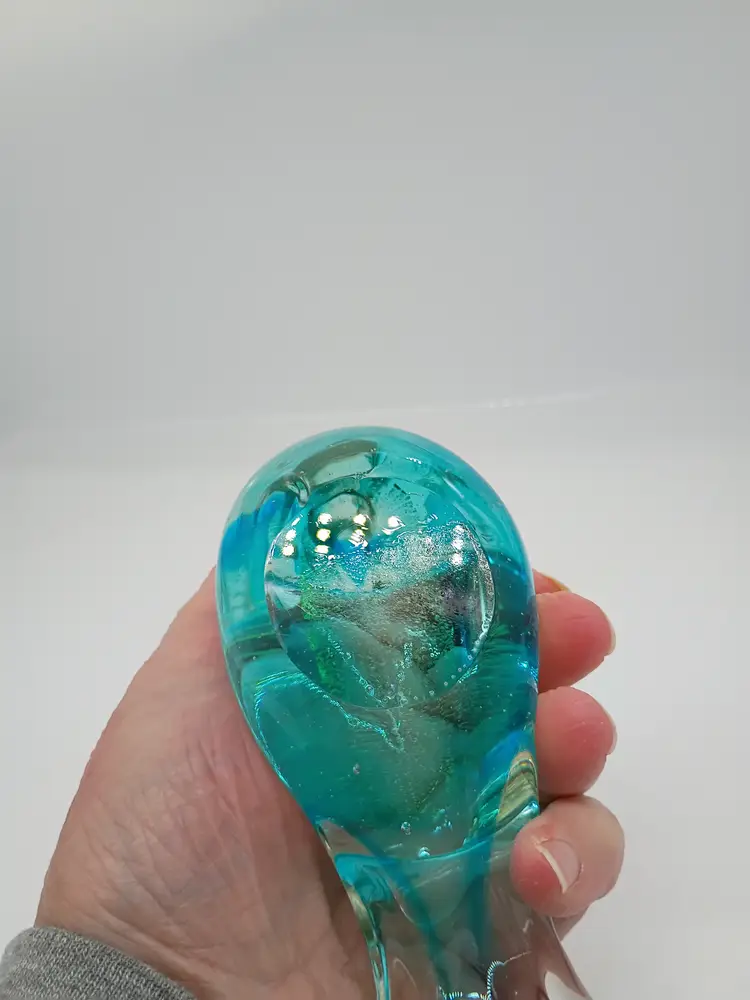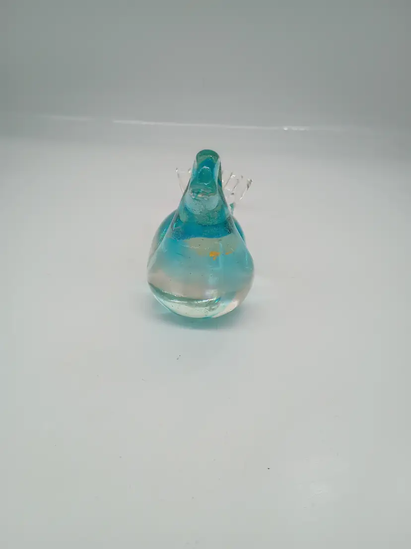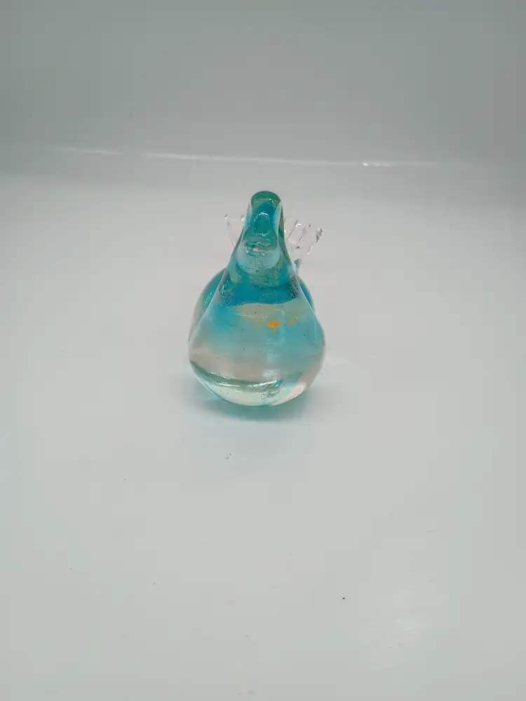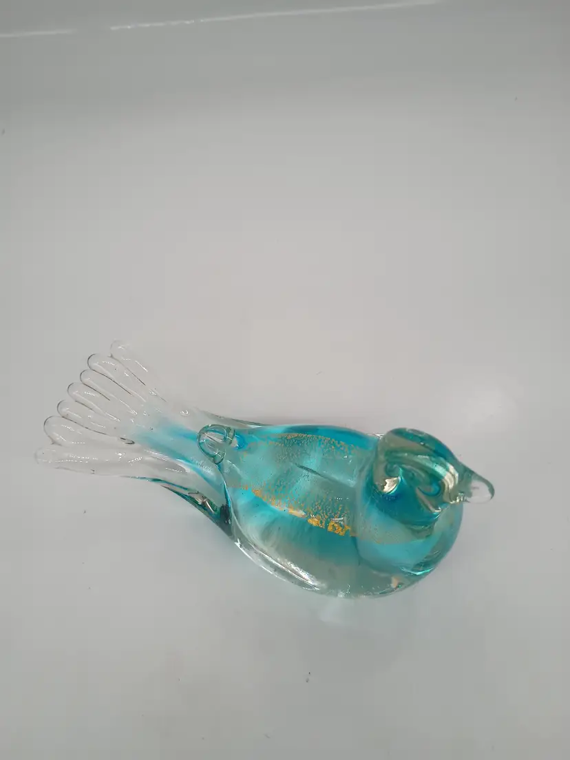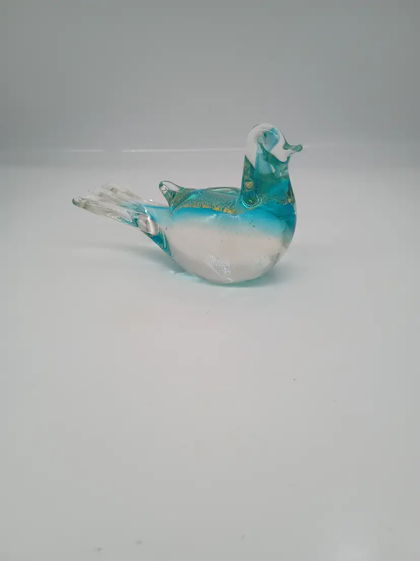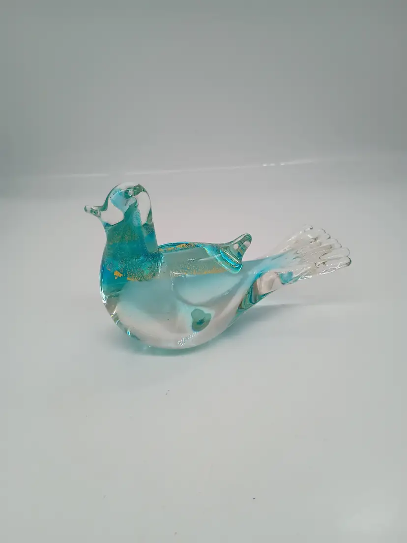 5th Avenue Crystal Hand Blown Blue & Aventurine Bird Dove Figurine Paperweight. This is 6 inches long 4 inches tall and 2.5 inches wide. Unsigned and Unmarked but attributed thru research. This is preowned. No Chips Cracks or Flea Bites, Beak Wings and tail are all intact. Smooth high gloss polished base. Near mint condition. Ships USPS domestically and UPS worldwide