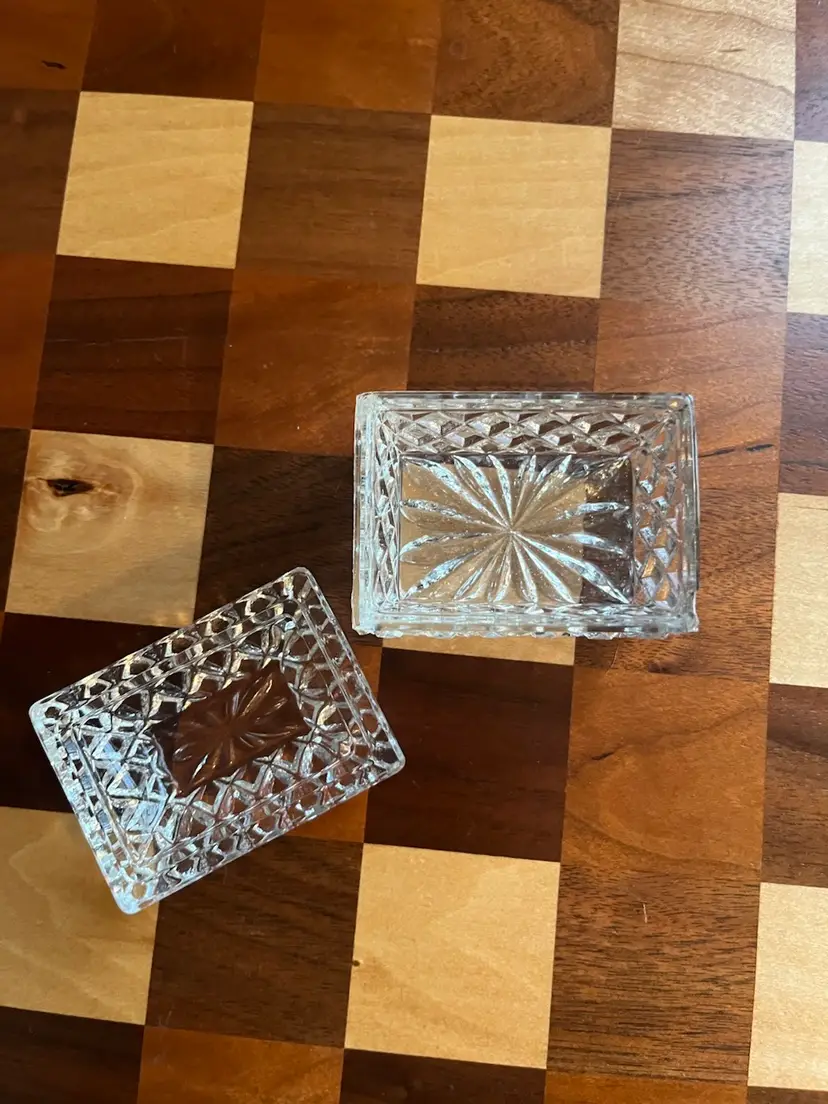 Cut glass, particularly decorative boxes, became popular in the late 19th and early 20th centuries, often produced in Europe and the United States. These pieces were used for storing small valuables like jewelry, buttons, or other personal items, and their intricate designs were meant to showcase craftsmanship and add a touch of elegance to a dressing table or vanity.