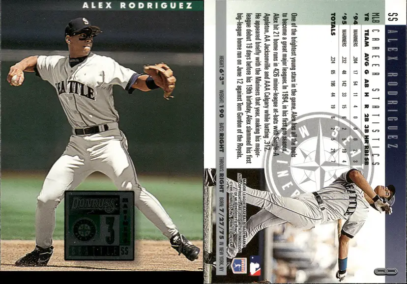Alex Rodriguez Rookie Lot Of 15 Baseball Cards
