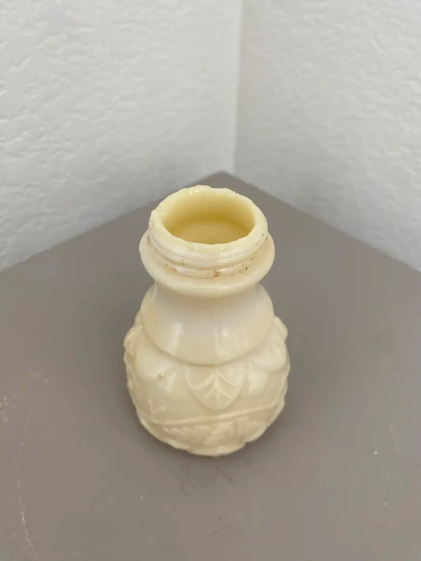 Antique new martinsville floral salt shaker bottle Circa 1905 Single bottle missing lid but makes a great bud vase Some chips around opening as shown otherwise no cracks or chips