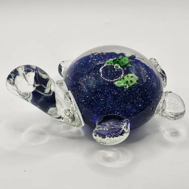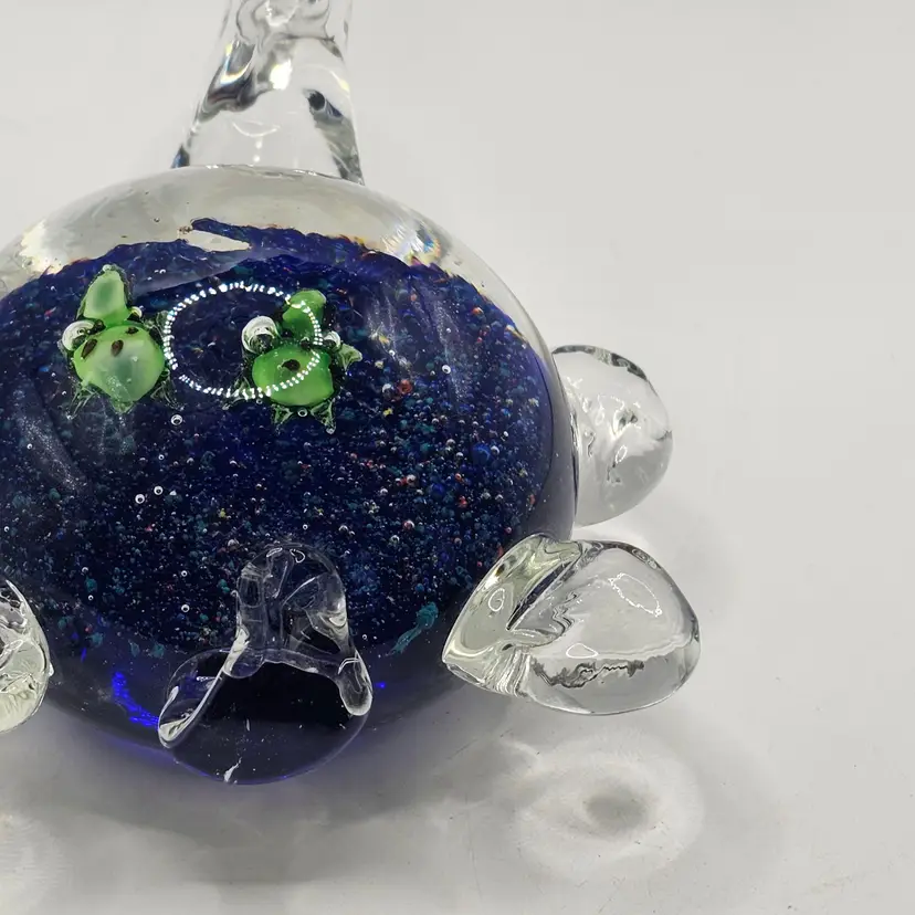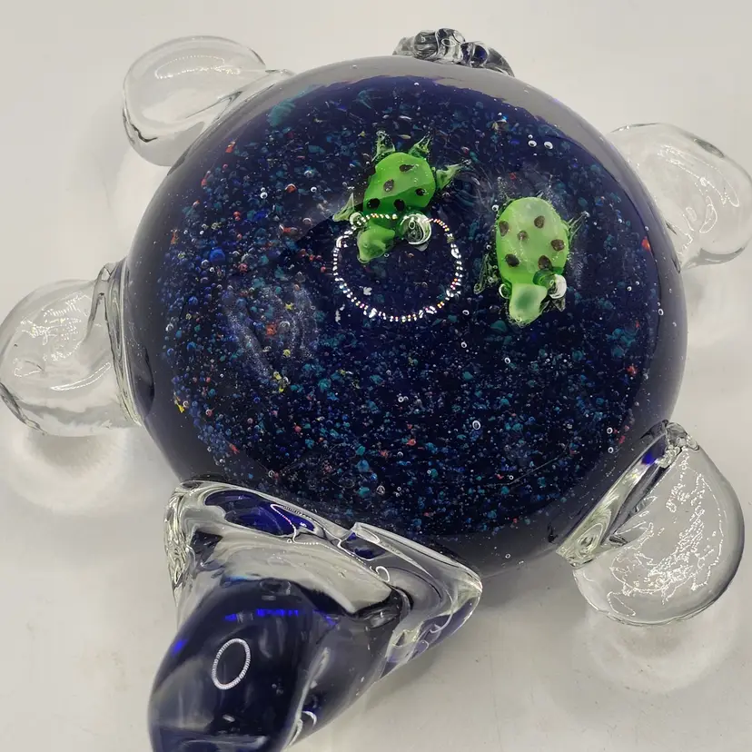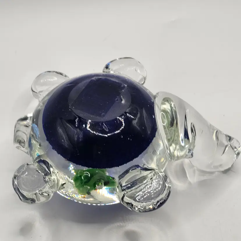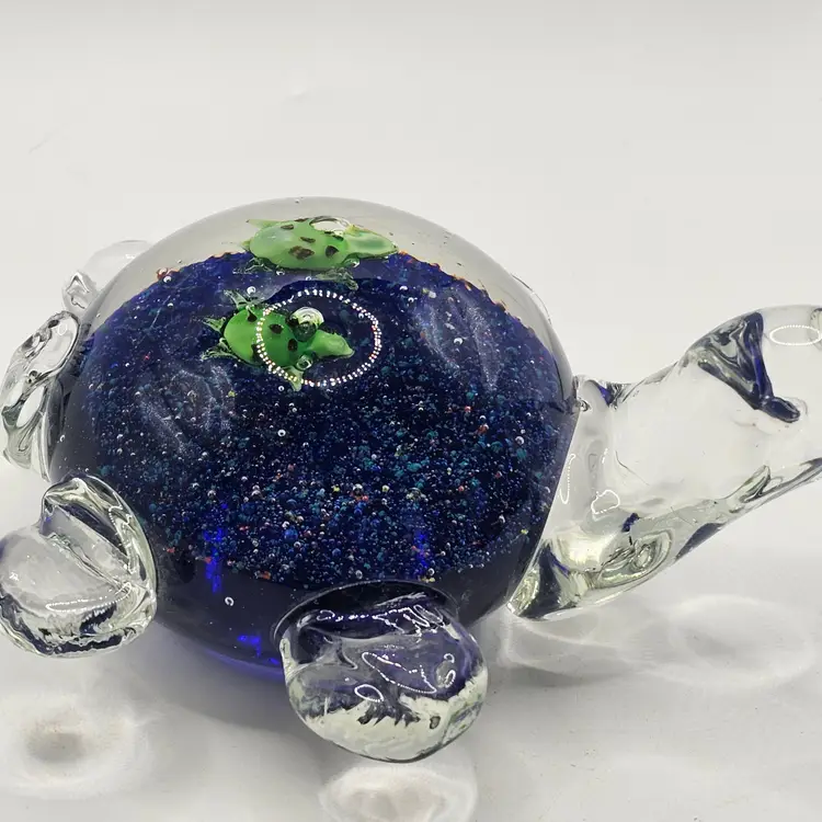 Art Glass Paperweight turtle Figurine with 2 babies inside