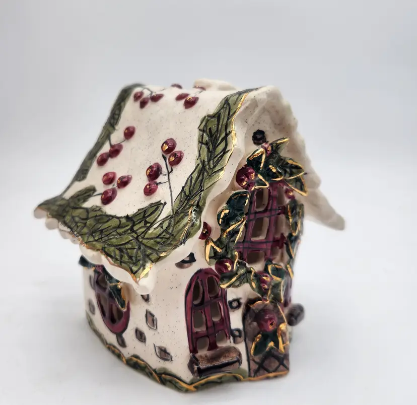 Keywords: Blue Sky Corp, Heather Goldmine, House Candle Holder, Cottagecore, Decor, Ceramic, 2002, Candle House, Home Decor, Decorative House, Collectible, Figurine, Display Piece