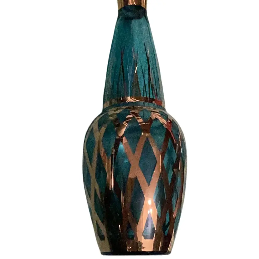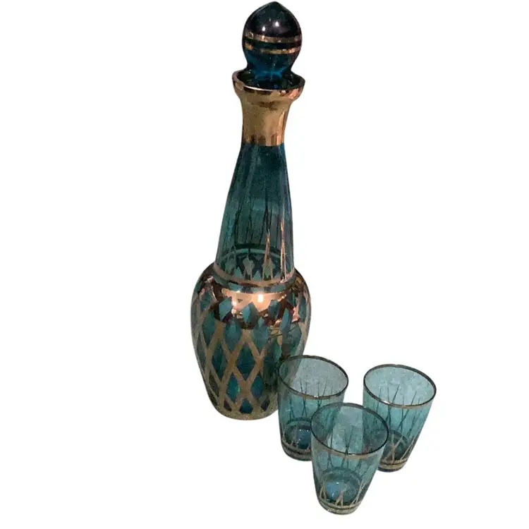 Bohemian Glass Decanter With 3 Matching Cups Decanter 14” T X 5” W Cups 3.5” T X 3” W