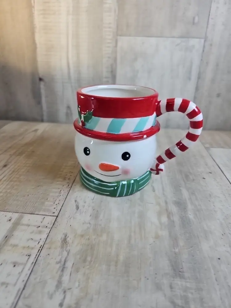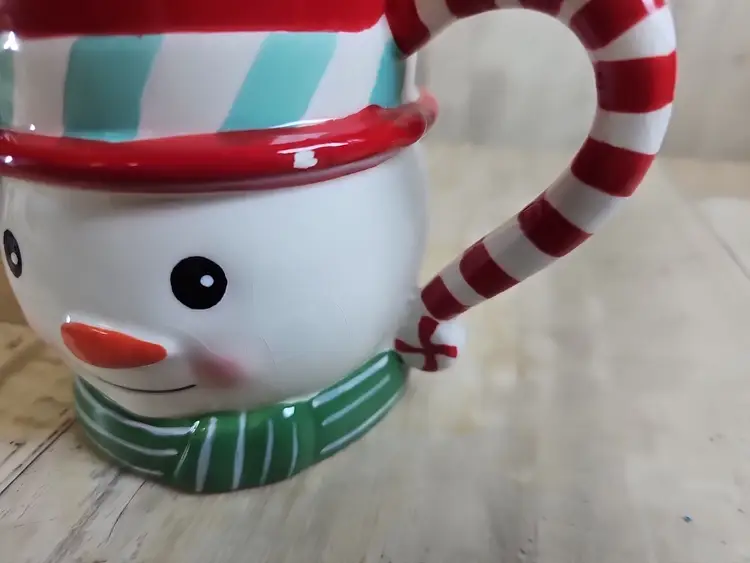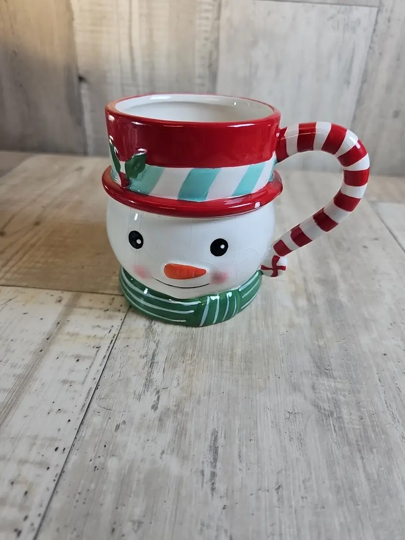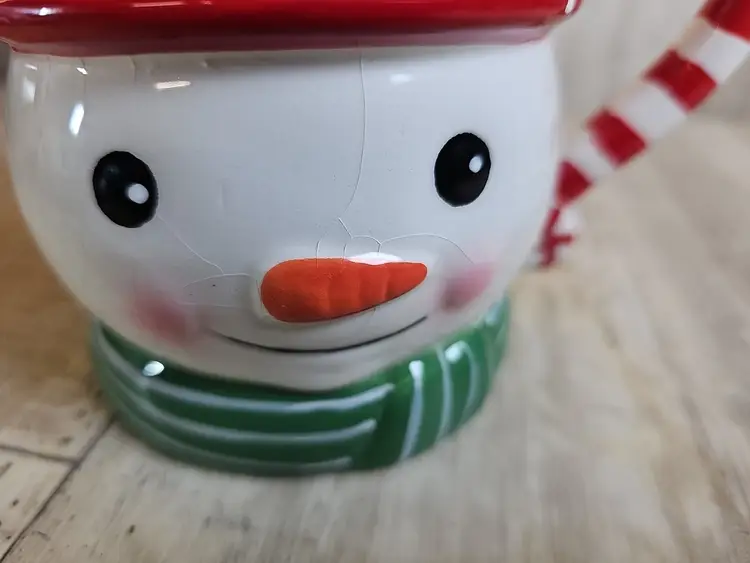 Snowman Christmas themed beverage mug. Vintage with clear coat cracks but still functional and looks good.