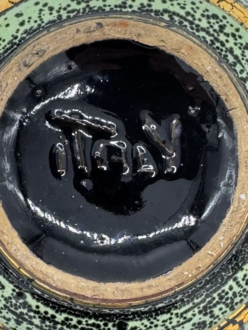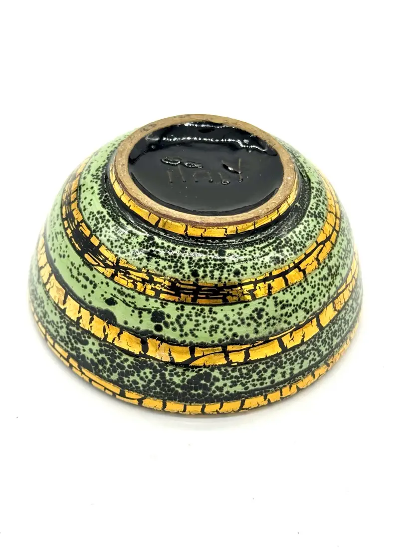 Bowl - Italian Ceramic Crackled Gold Green Black 5”W