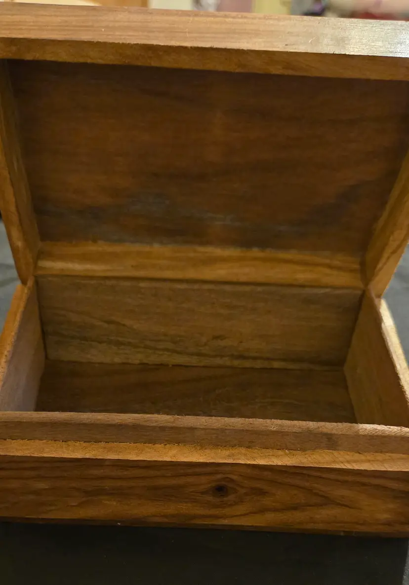 Hand carved wood box with Goddess Moon and Pentacle.Measures 6x4 Brand new no damage.Perfect for altar oils,herbs,crystals.