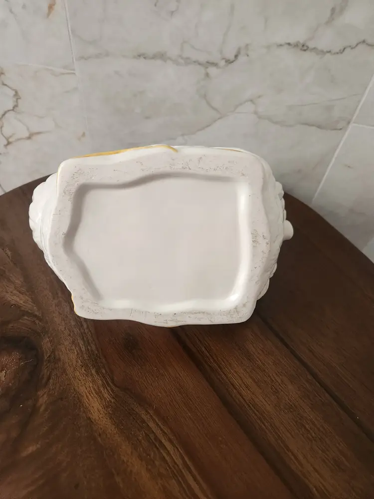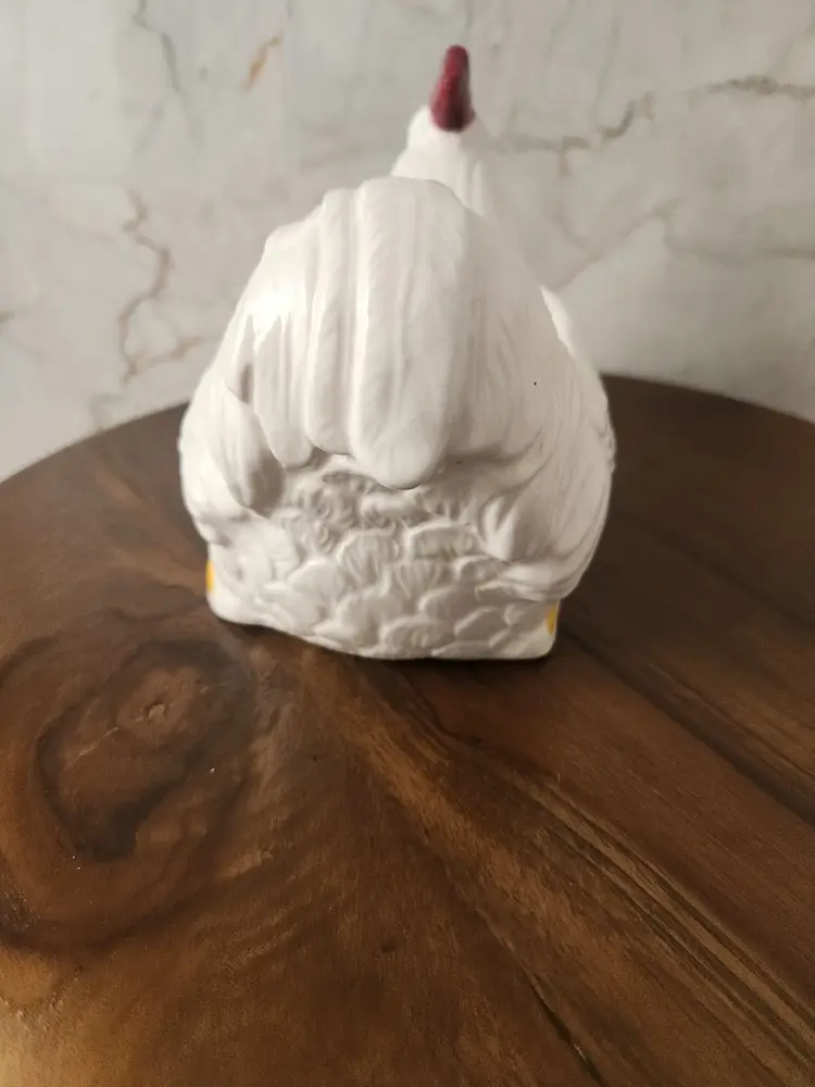 This can be used as a planter, utensil holder, napkin holder or anything else you can come up with. He is in great condition. The rooster is approximately 6 inches tall and 8 1/2 inches long.
