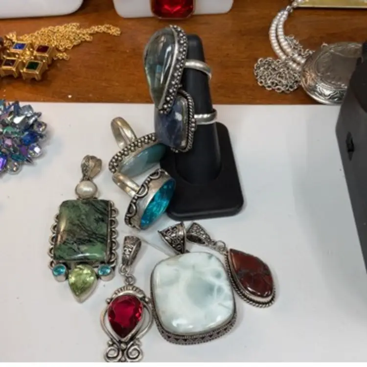 Welcome to our shop of mostly pre-owned and sometimes new jewelry treasures, trinket boxes, compacts - sometimes art and glass. Please follow us so you're in the know when we go live or add new items. Our curated beauties include a large selection of vintage pieces as well as many contemporary items. We also craft and design our own fun costume (and some fine) jewelry pieces, bookmarks, digital art and more in our small studio.