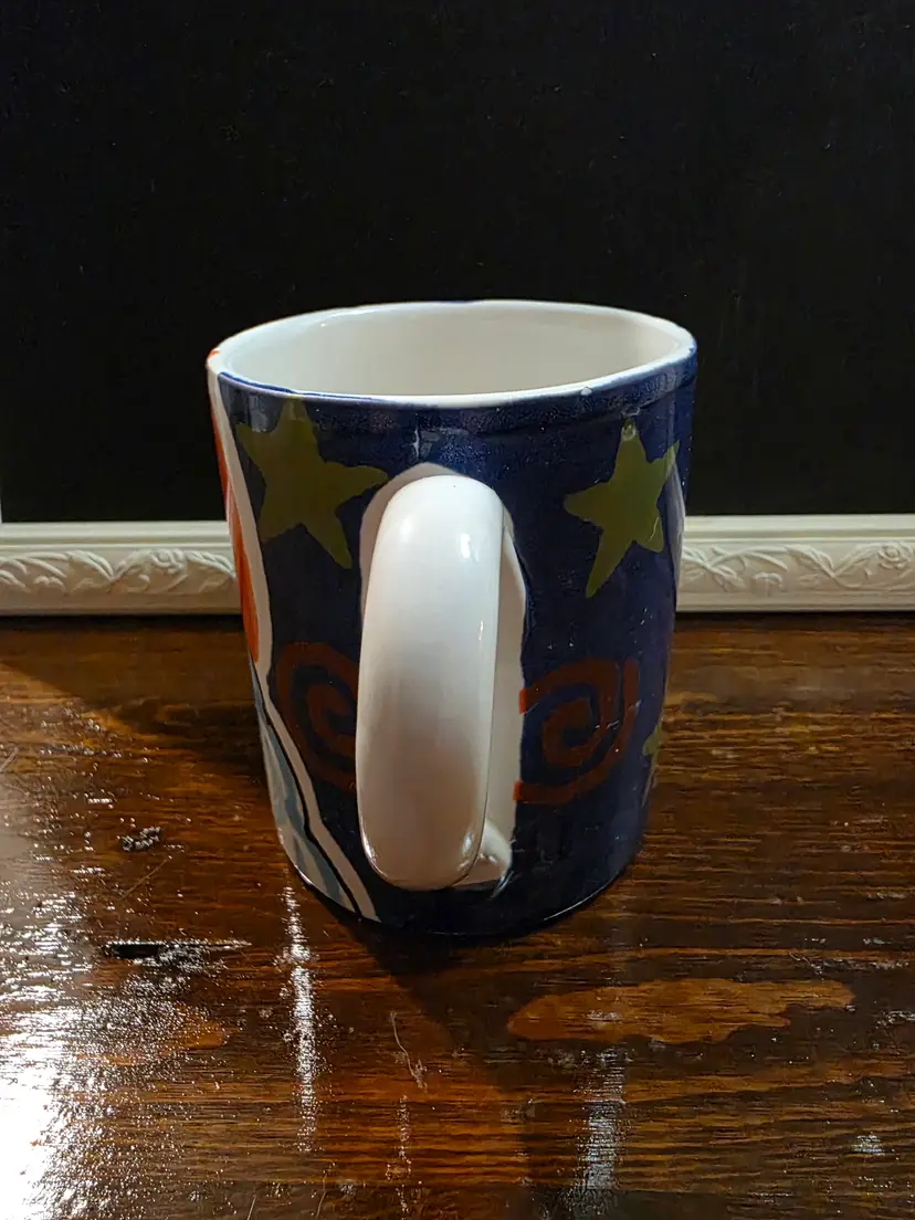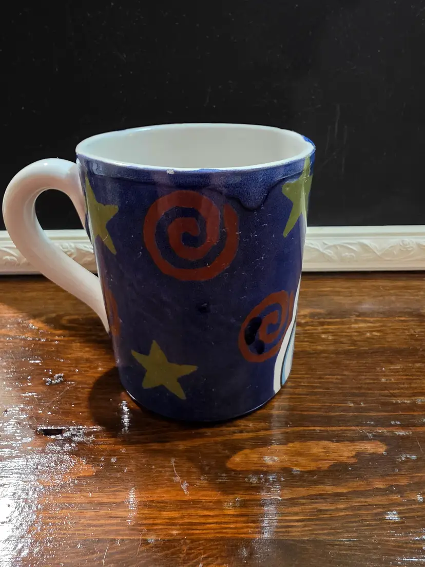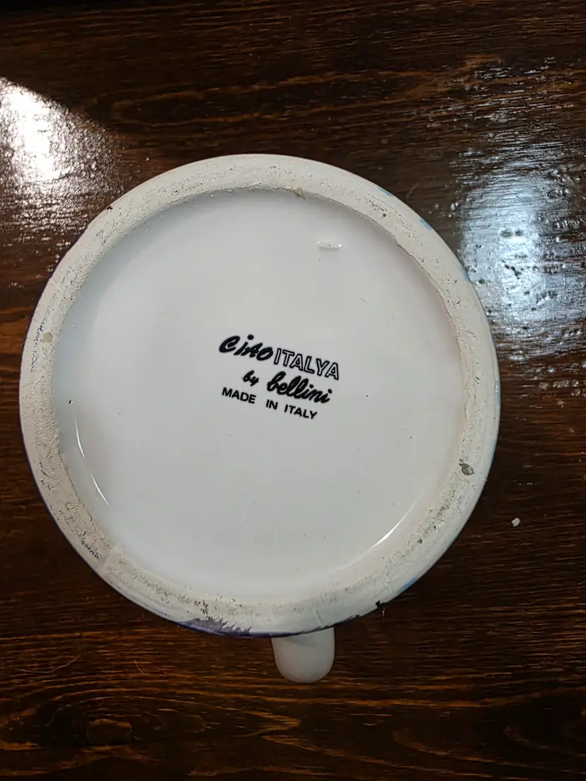 Ciao Italya by Bellini hand painted Santa Claus Mug made in Italy. Mug is in Amazing condition with no chips or cracks. Beautiful colorful coffee mug of Santa Claus on a blue background with green stars and red swirls. Mug is approximately 4 inches height and 3.5 inches round diameter width. Very cute piece perfect for your holiday season.