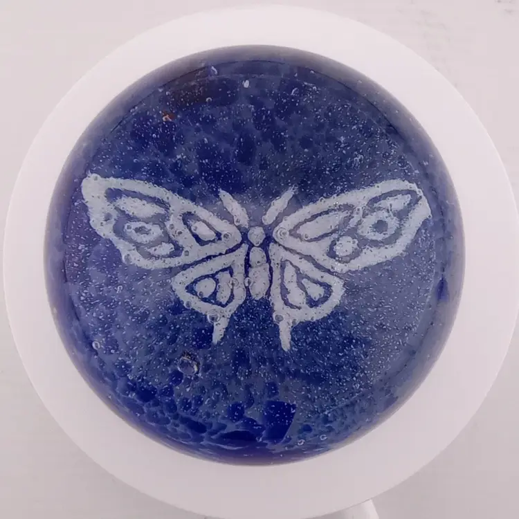 Cobalt and white butterfly paperweight