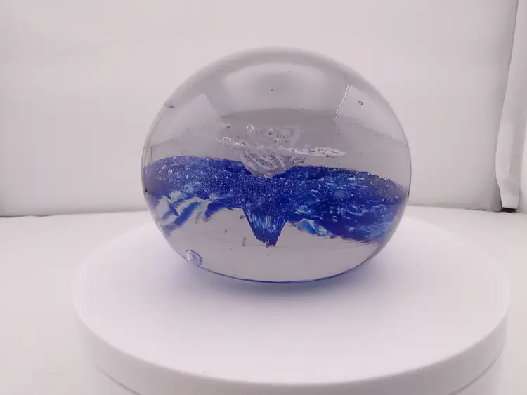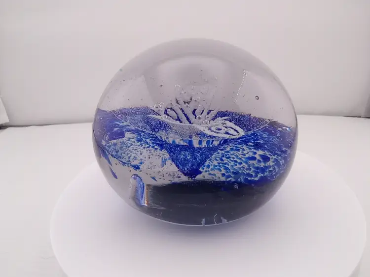 It's a lovely cobalt and white butterfly paperweight. It's in excellent condition with no noted flaws.