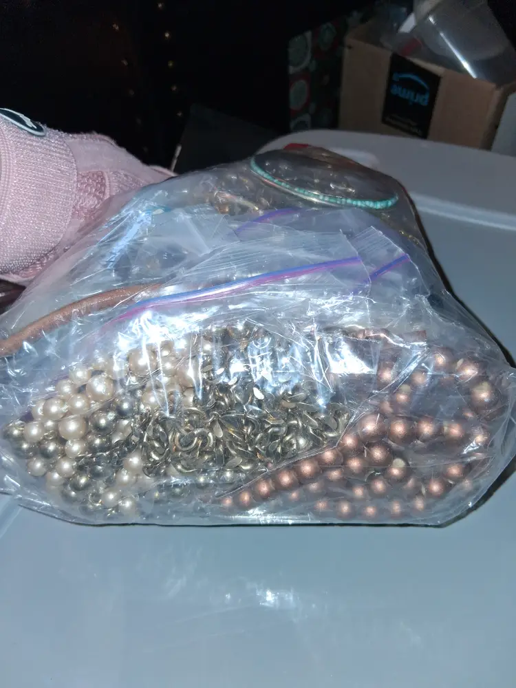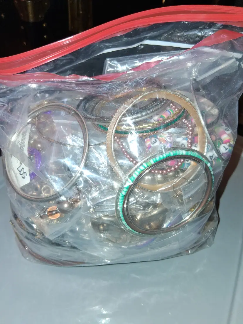 This is a 4 lb mystery bag #10, mixed lot of vintage to modern, all wearable costume jewelry, consisting of, necklaces, earrings, bracelets and even some more. Each piece or earring set, I have individually bagged in mini zip lock bags and they ready to be resold online, live auction selling, or at flea markets, etc. Some bangle-style bracelets are not bagged. The jewelry is a mix of multicolor pieces made with mixed metals and materials, including vintage pieces to modern styles. This collection offers many more than 50 pieces perfect for fashion enthusiasts looking to add unique and eclectic pieces to their collection, or for reselling. You could make your money back in about 12-15 pieces and the rest, is your profit! I cut out a big part of the work, by sorting, selecting and bagging each piece for you! All are in GREAT COND!!
