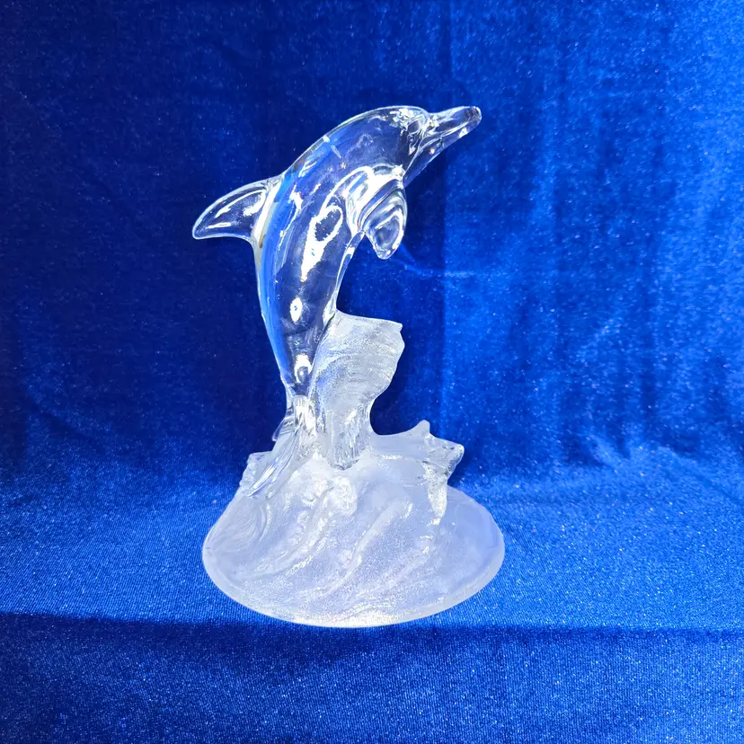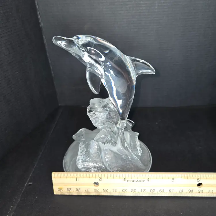 Just stunning French crystal dolphin figurine. No fleabites, chips, cracks, or mold marks. See pics for dimensions please. GORGEOUS
