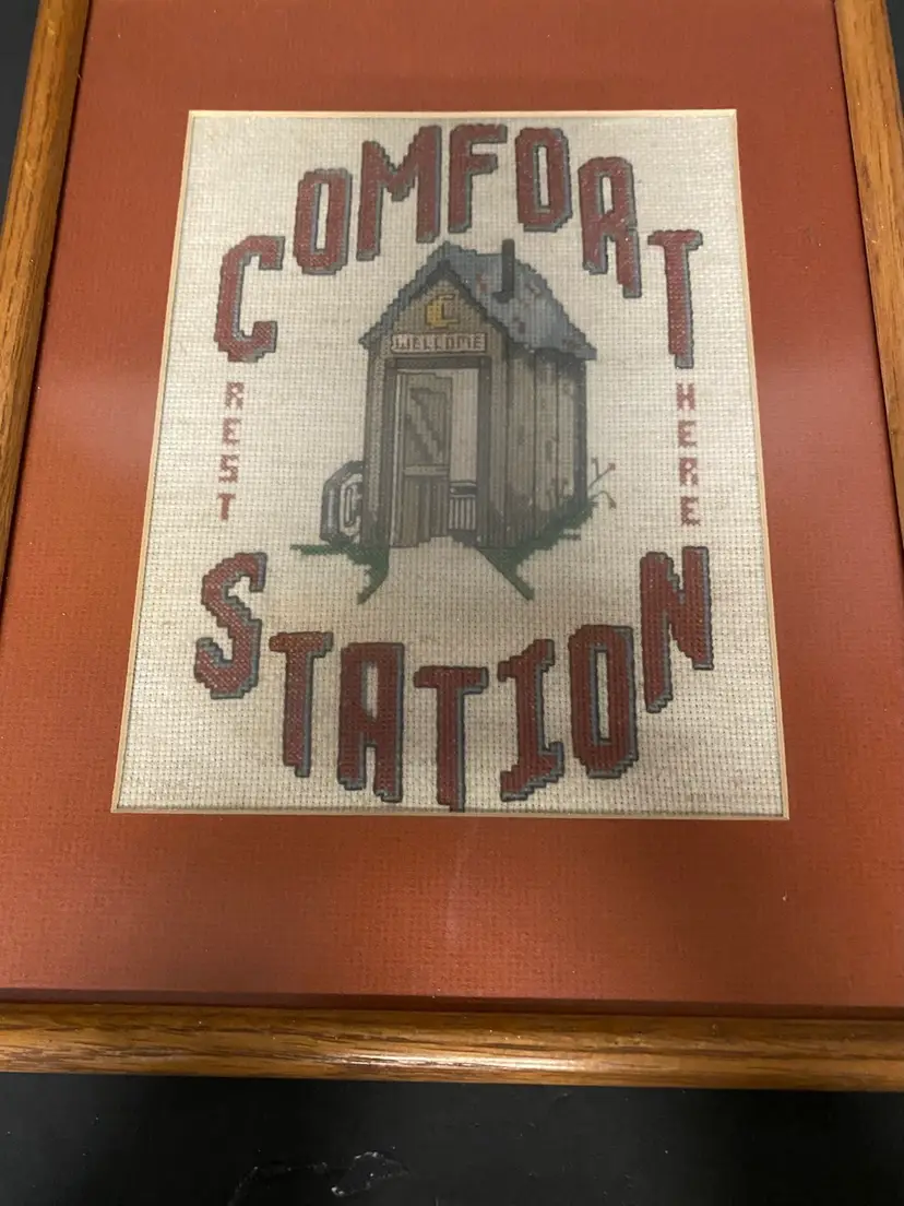 Cross-Stitch Comfort Station & Rest Here , Framed Art