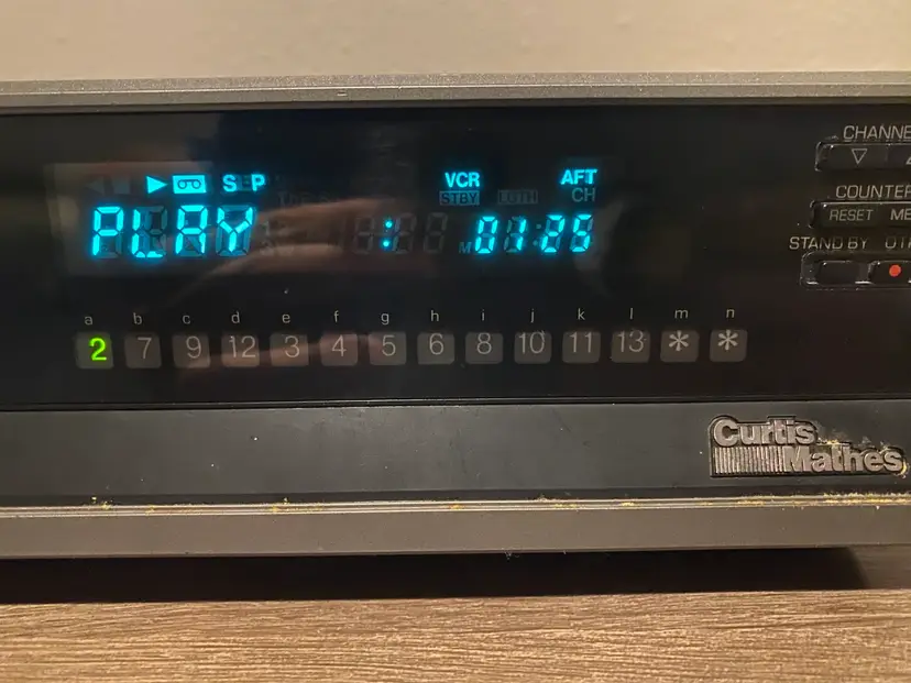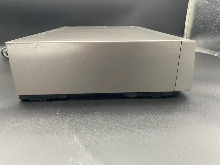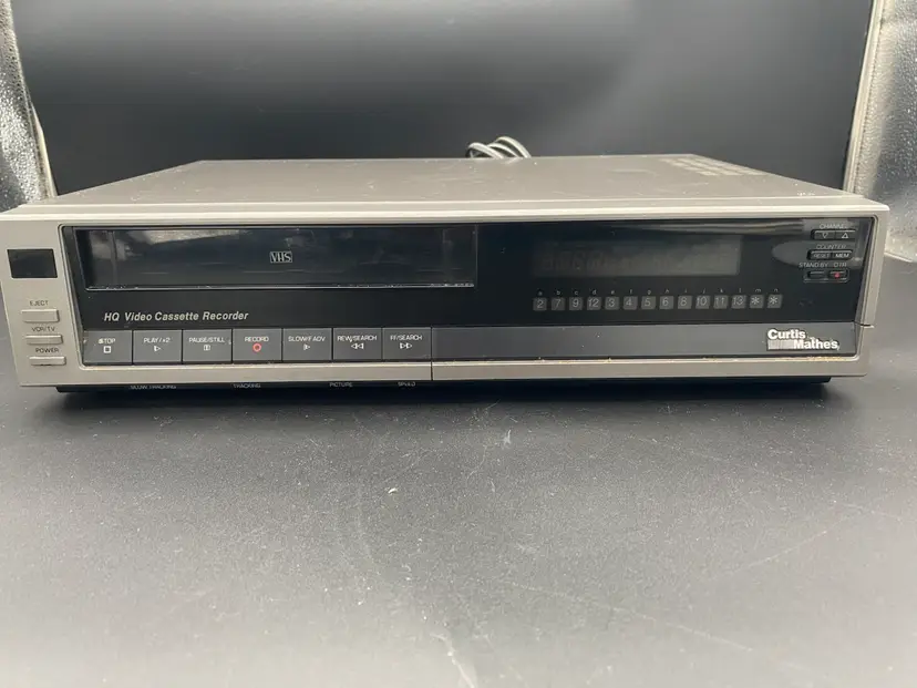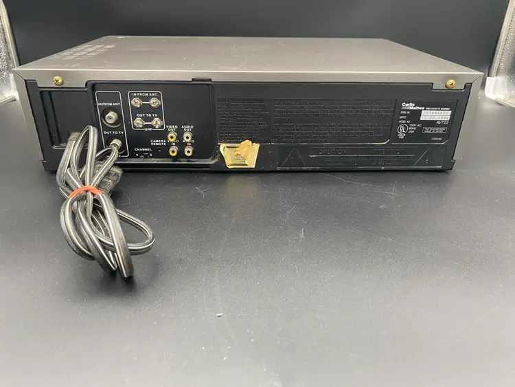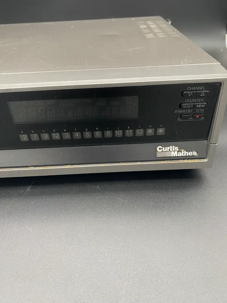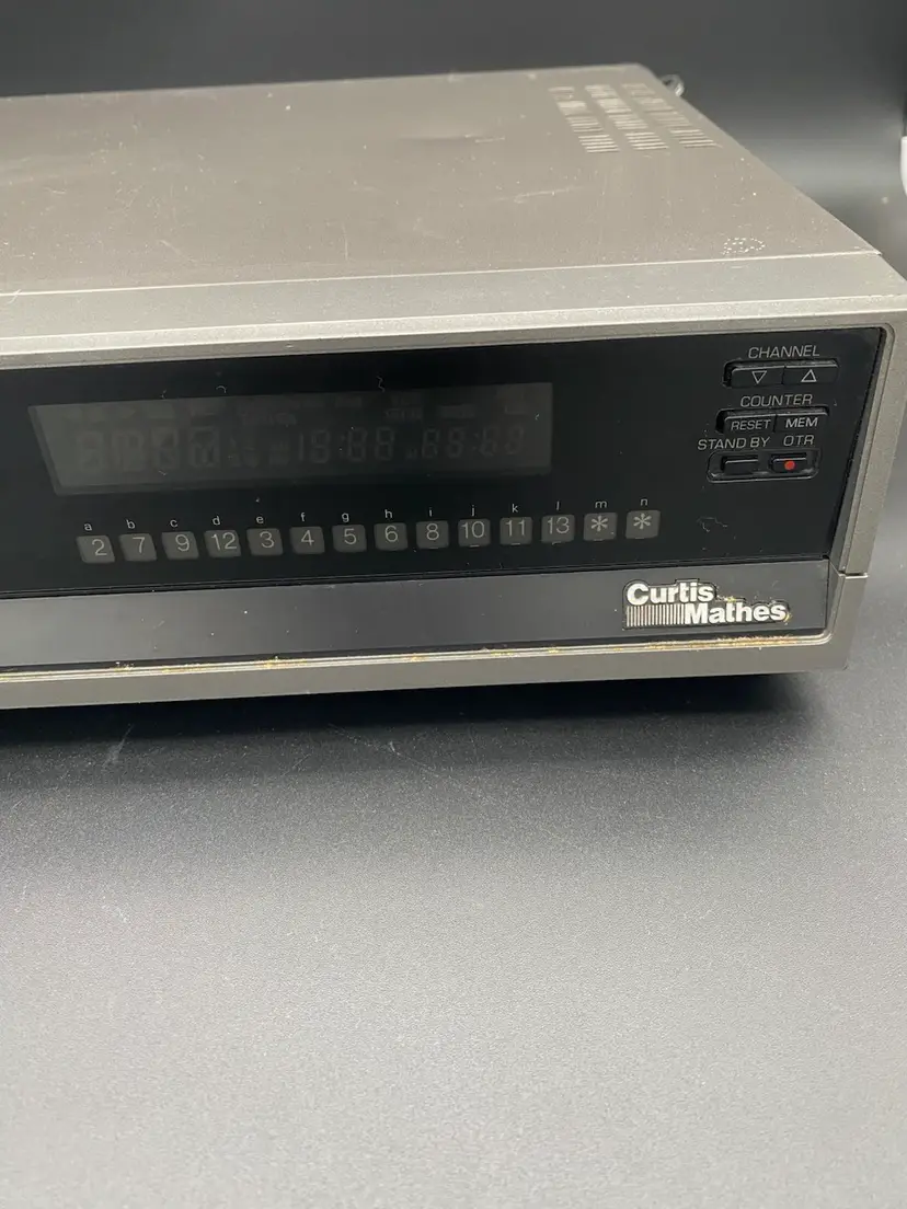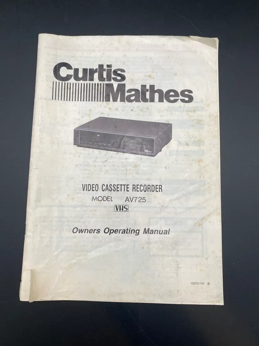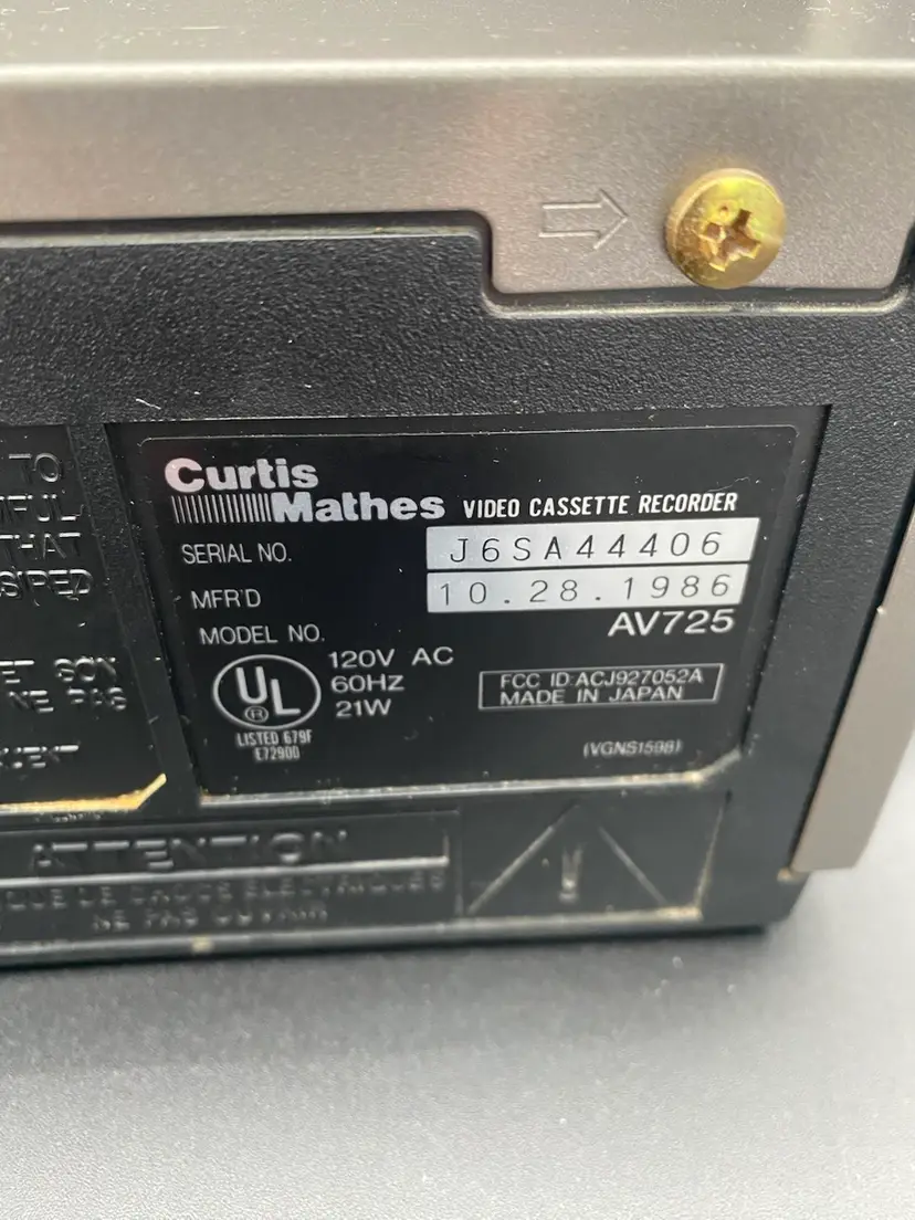 You are purchasing one Gray VCR Player Model #AV725 by Curtis Mathes from the 1980's. This Unit is around 17 inches wide, 12 inches long, and 4 inches tall. This Player is in overall good physical condition. No breaks or cracks in the material, one small dent on the top shown in the images. No fraying of the Cord. No issues with Digital Display. Includes a set of Connection Cables and the original Manual. Remote is included but does not work due to corrosion in Battery Chamber. Player is in tested working condition with all of the functions. Sound is very clear. Images seemed a touch grainy to me, but I am more used to 90's models and this is a mid-80's model so may be normal. May need a more fine tuned exterior cleaning.