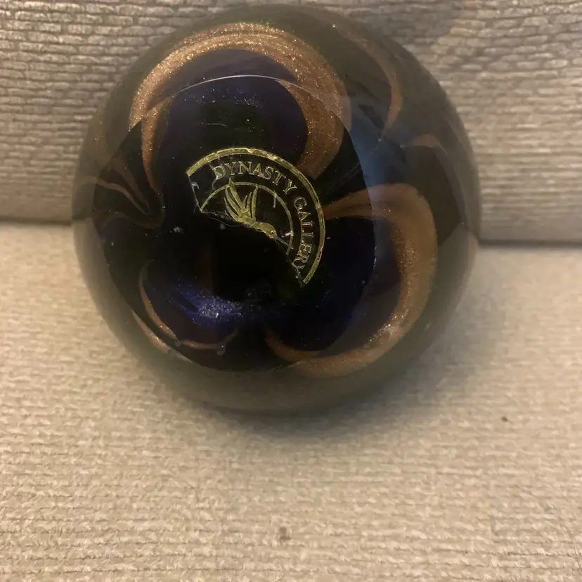 No chips or cracks. Has white inclusion. Smooth bottom with half of the label missing. 3 1/2 x 3 1/2 inches.