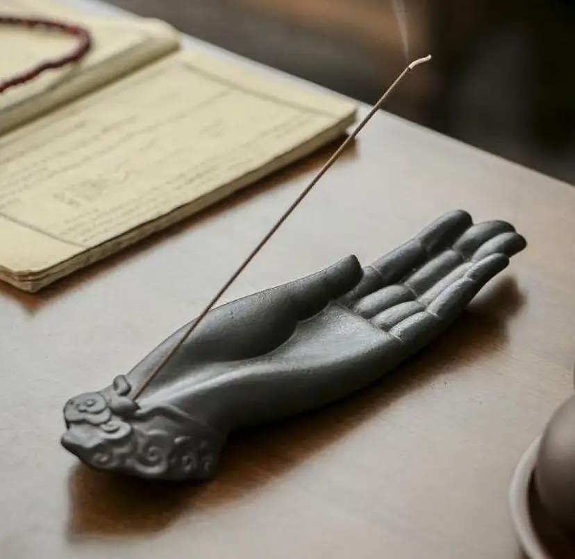 This is a very unique and elegant porcelain hand incense stick incense burner/ ash catcher.Measures 10.5" There are no chips or cracks.Brand new.