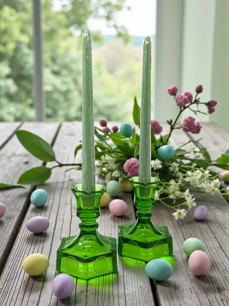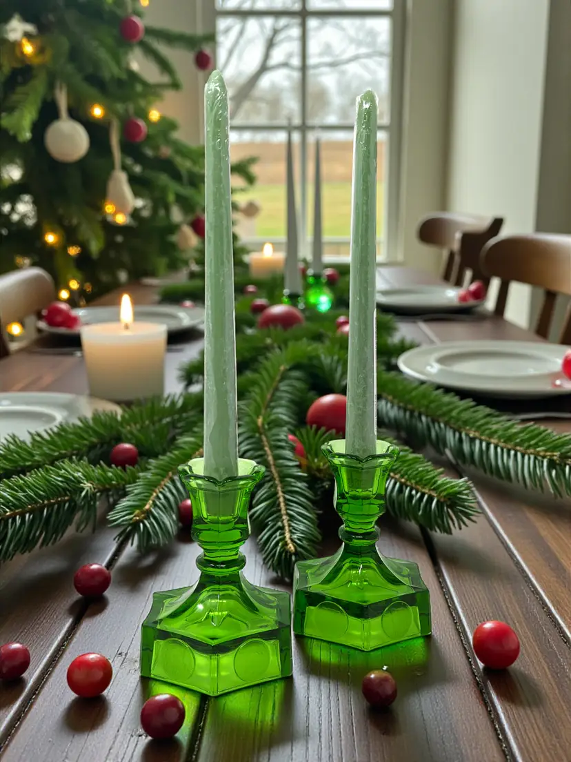 Display Ideas: • Pair with tall taper candles for seasonal tablescapes • Style on a bookshelf or credenza with complementary green glass • Great for vintage wedding décor or festive holiday centerpieces