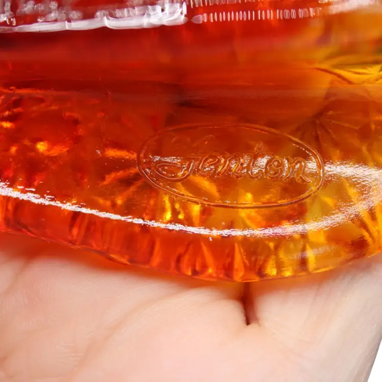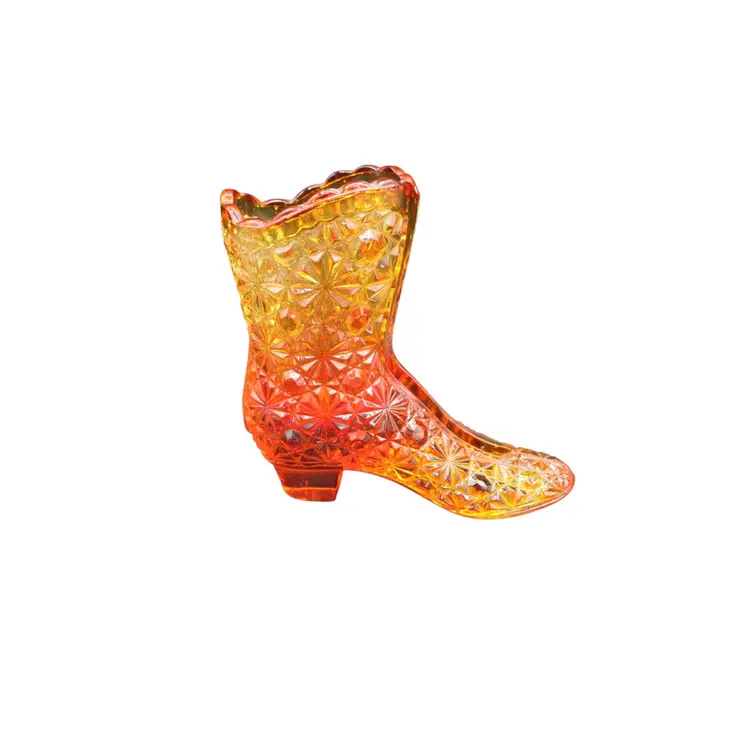 Fenton Amberina Daisy & Button Glass Shoe High Button Boot Cadmium Glow UV Reactive. It measures 4”x1 3/4” and 4 1/4” tall. No chips or cracks.