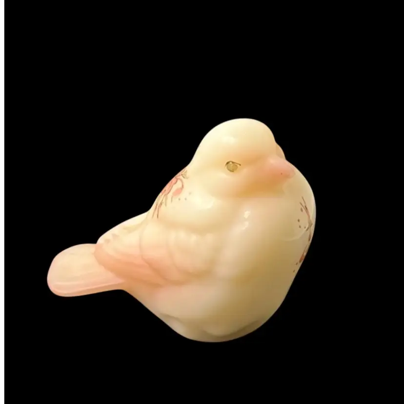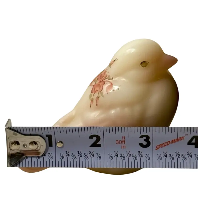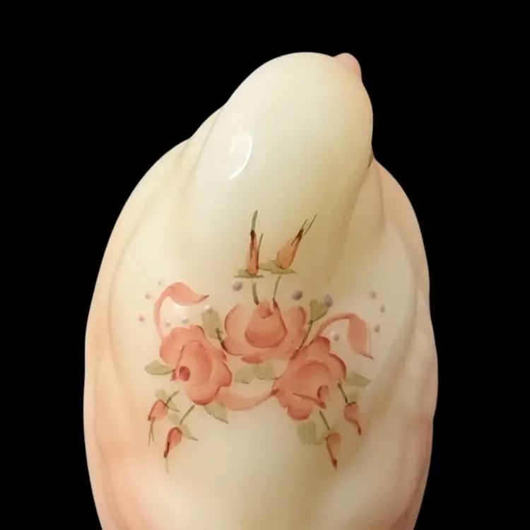 Fenton Bird Figurine Hand Painted - Pink/Peach Roses - Signed