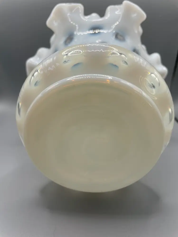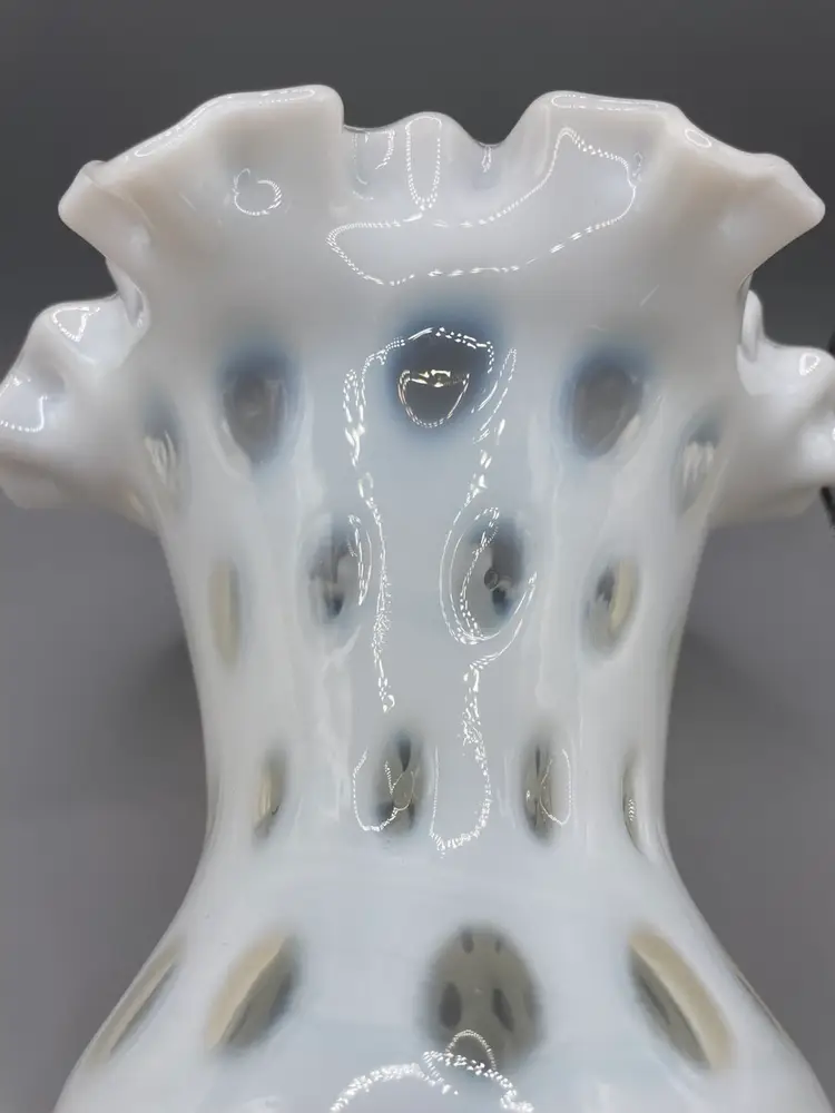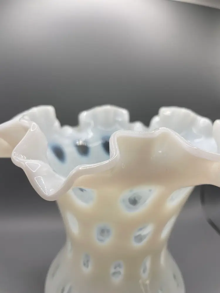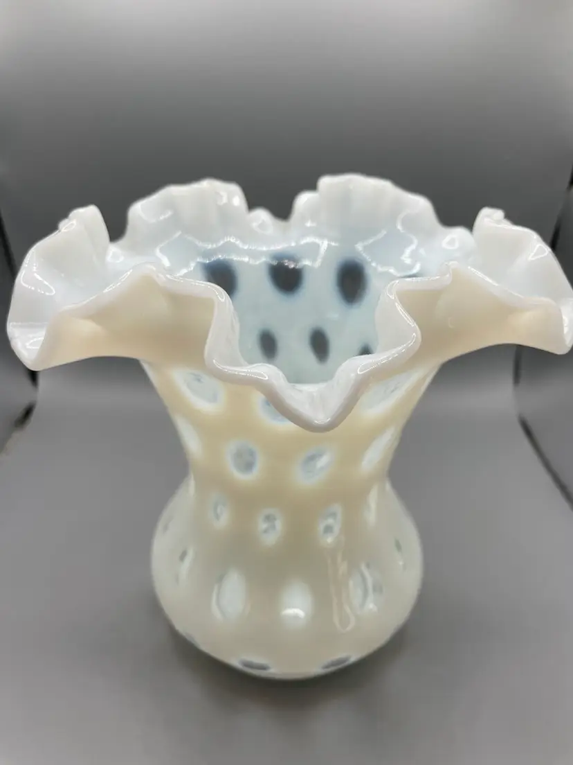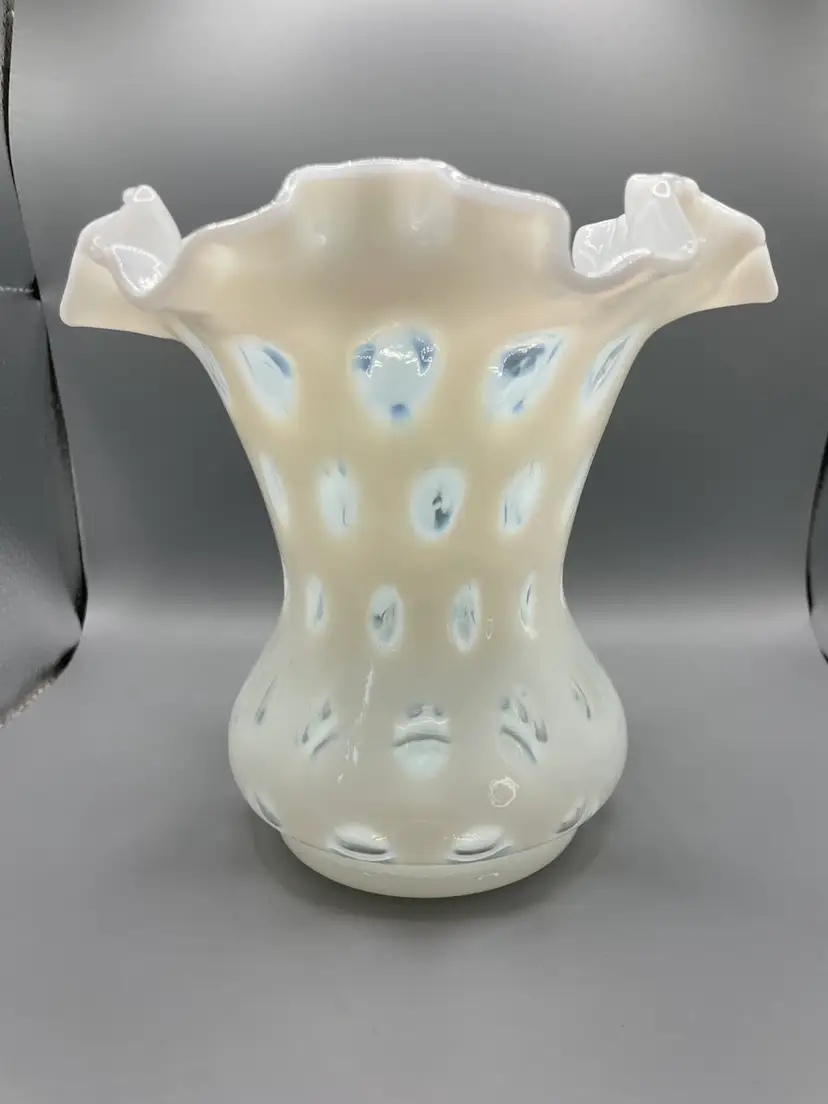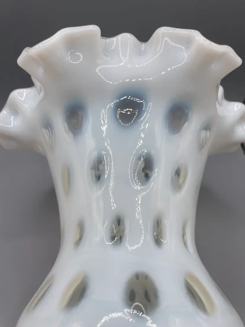 Fenton Coin Dot Ruffle Vase French Opalescent 6”