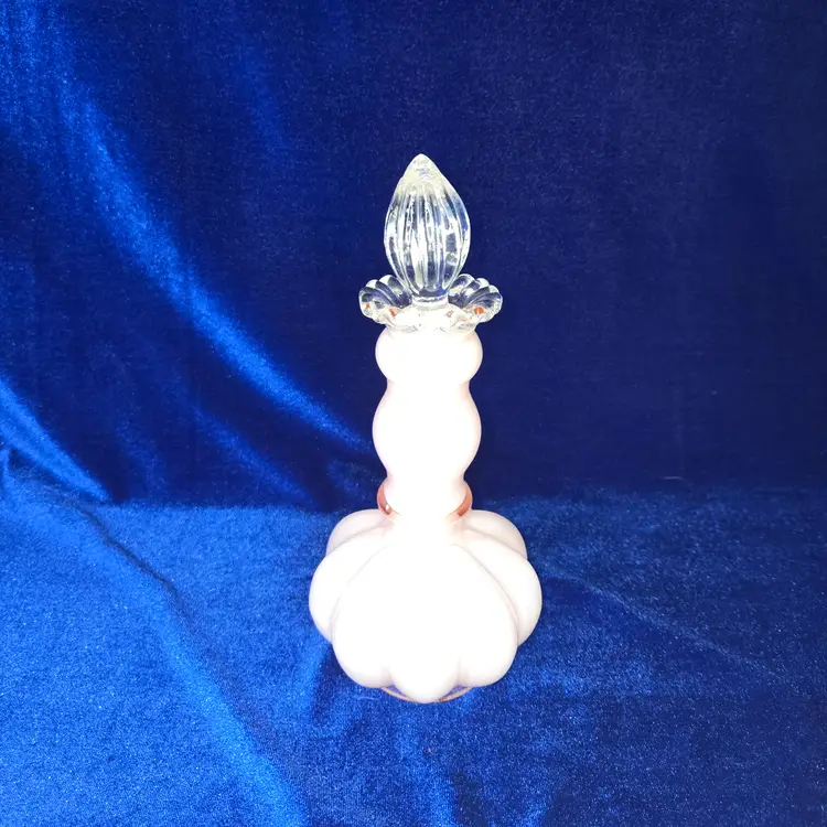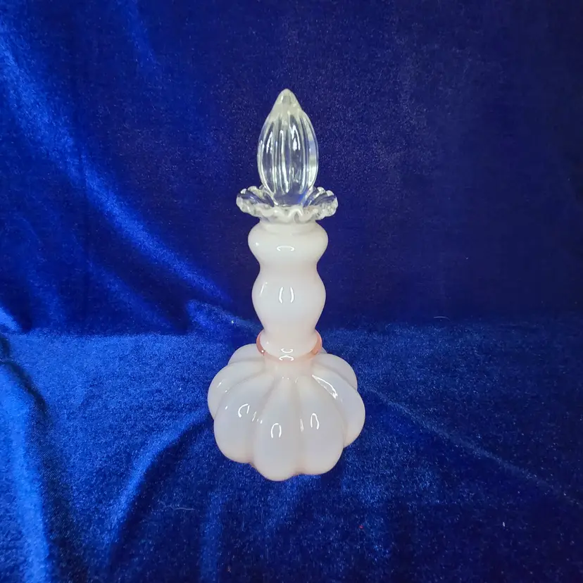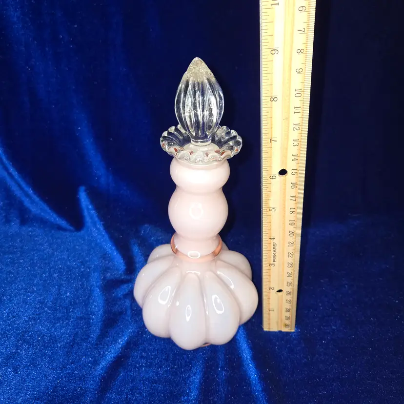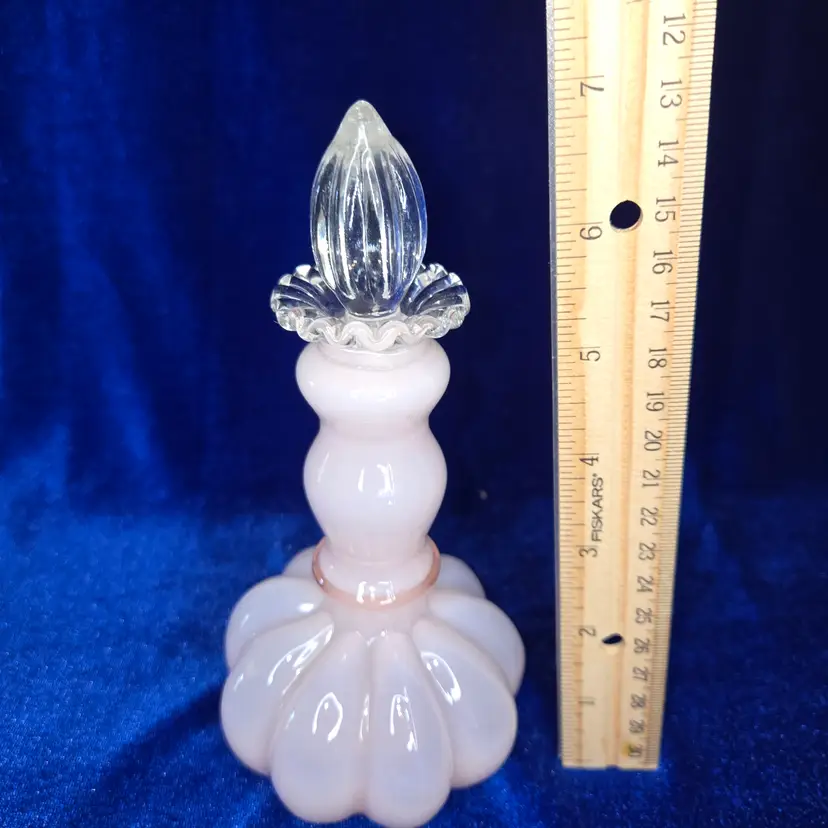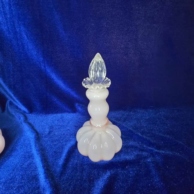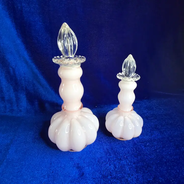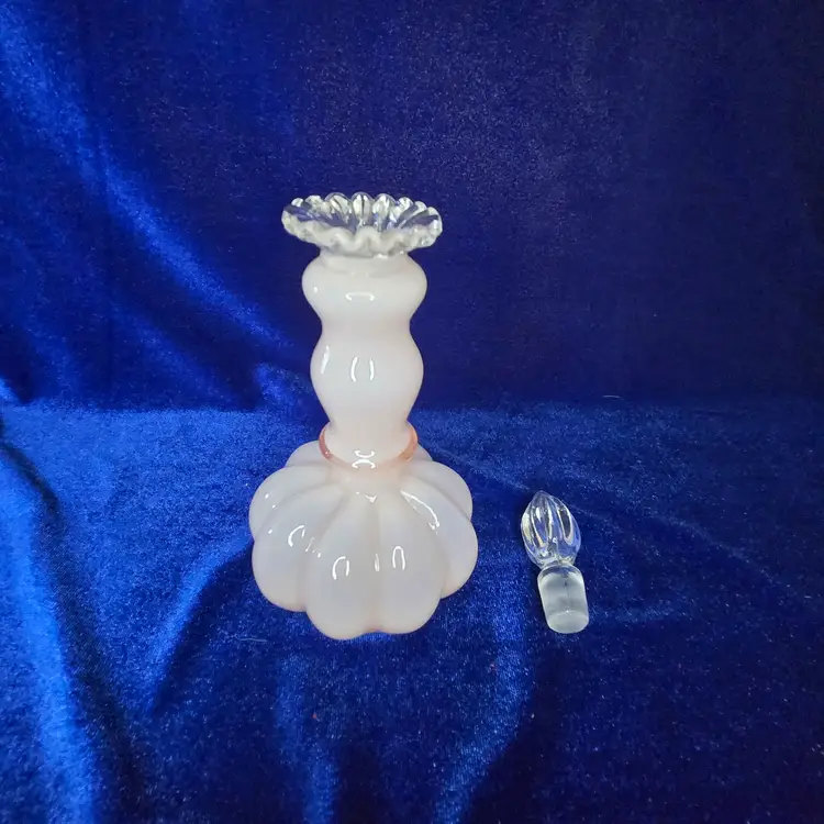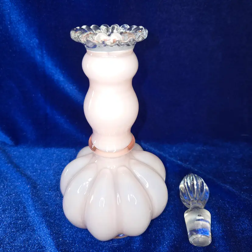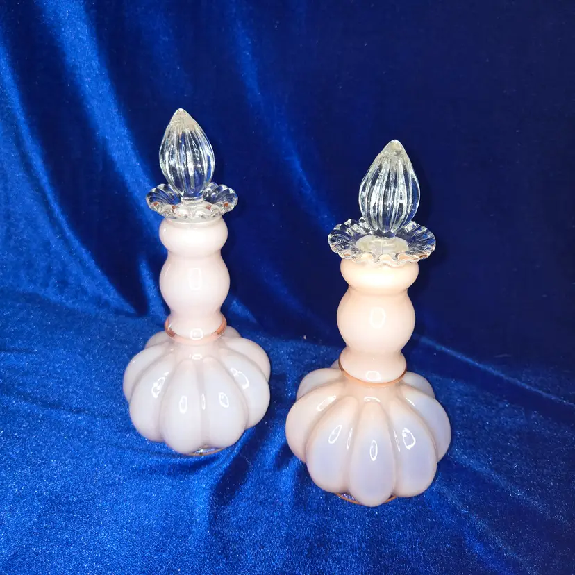 Fenton Rose Overlay Cased Melon Vanity Set Vintage 1940's Ribbed Stoppers 4 pcs