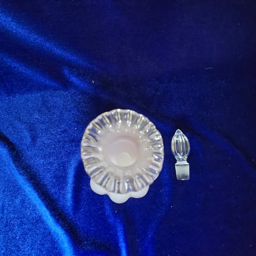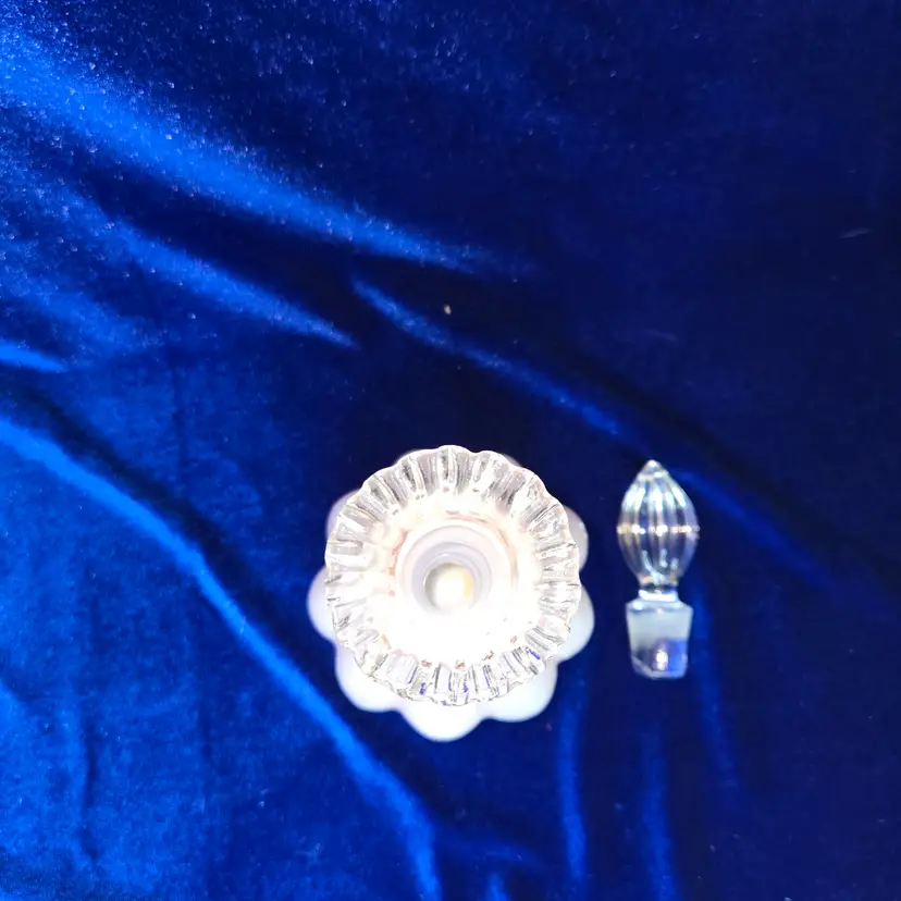 Beautiful and flawless. Powder jar and 3 perfume/cologne/lotion bottles. One cologne with darker base. No chips, cracks, scratches or repairs.
