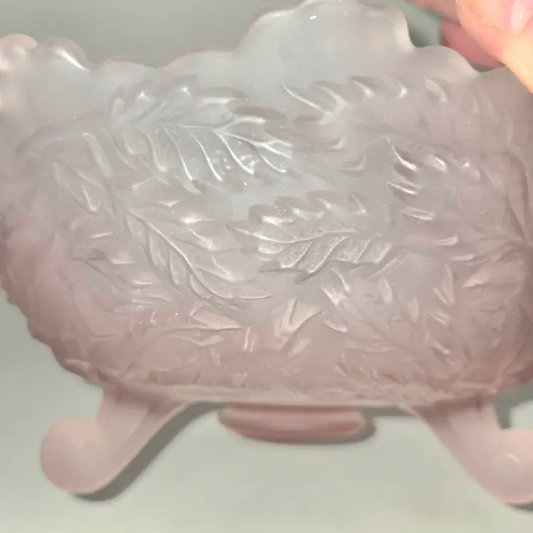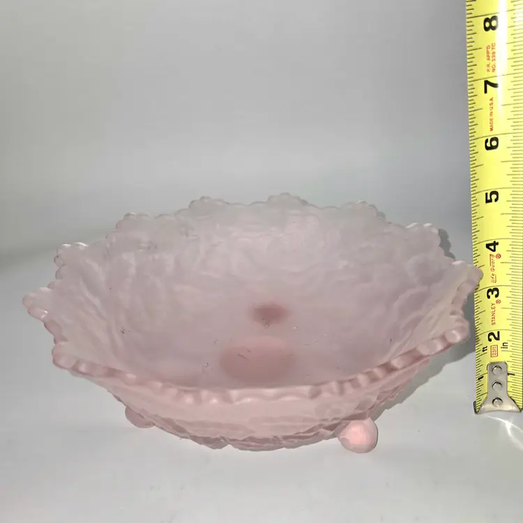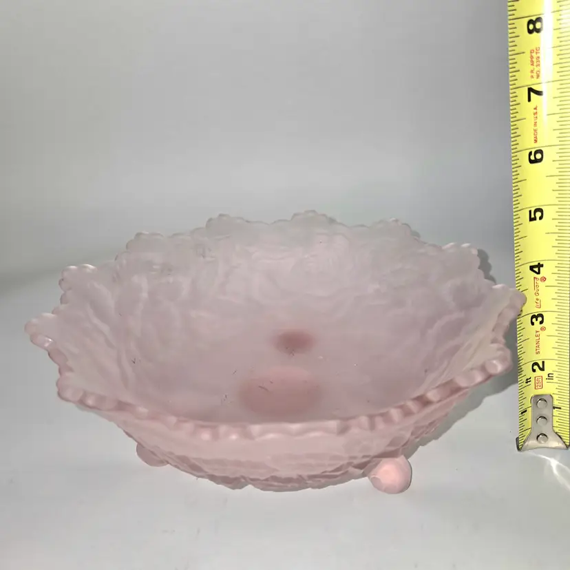 Fenton Satin Glass Moss Rose Bowl Footed Vintage