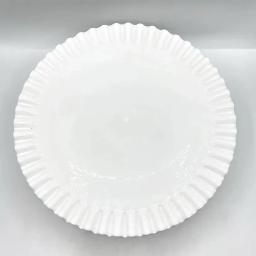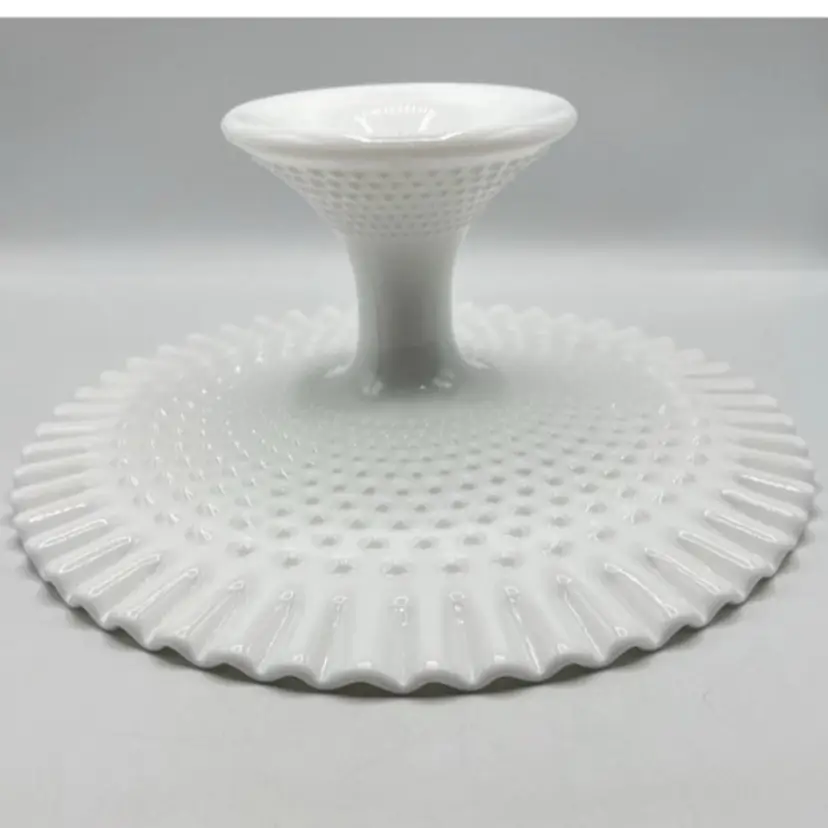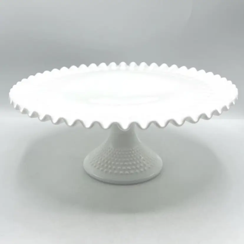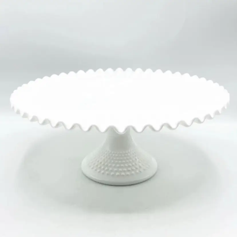 FENTON White Milk Glass Hobnail Cake Plate Stand Fluted Edge 12.5" x 5.5"  *READ