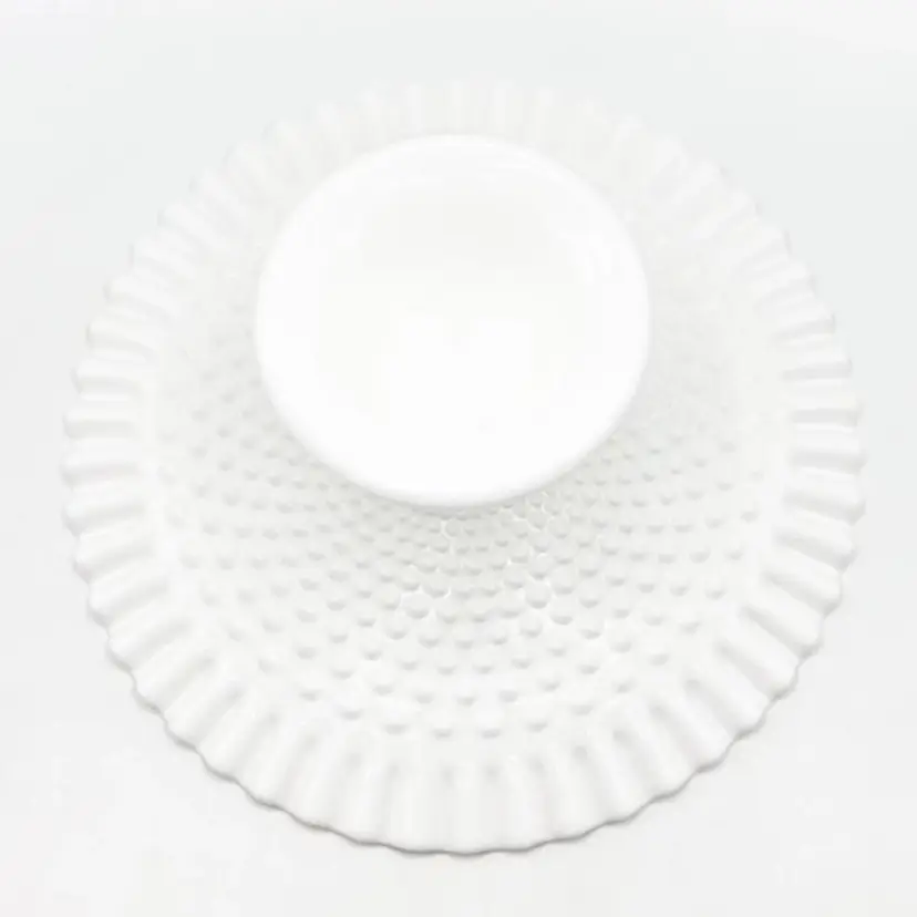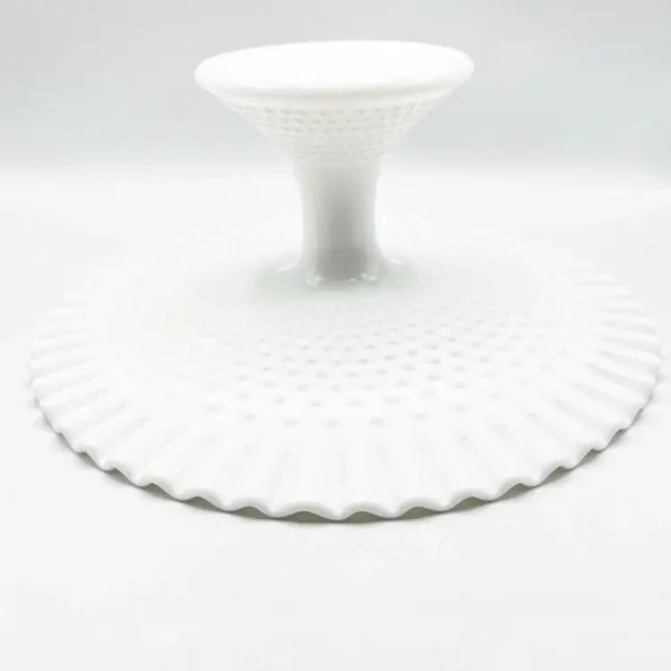 FENTON White Milk Glass Hobnail Cake Plate Stand Ruffled 12.5" x 5.5" *READ