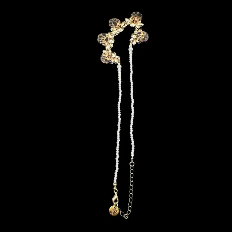 Floral Animal Print Bin Necklace By Plunder, 22”L