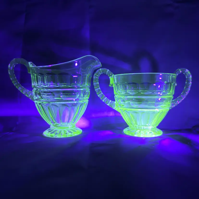And yes — they glow like a dream under UV light. Ideal for display or daily use, this set is a must-have for uranium glass collectors or Deco glassware lovers.
